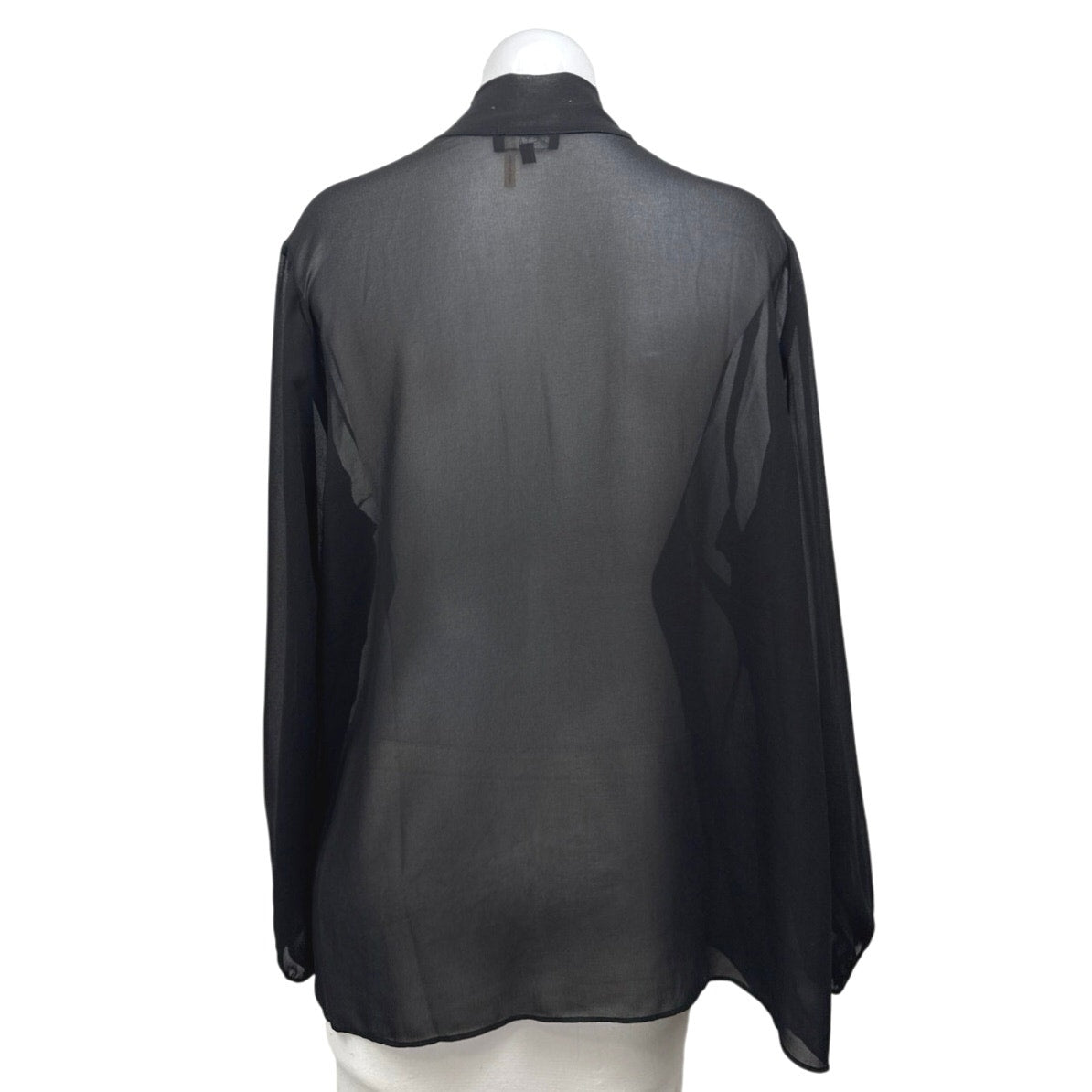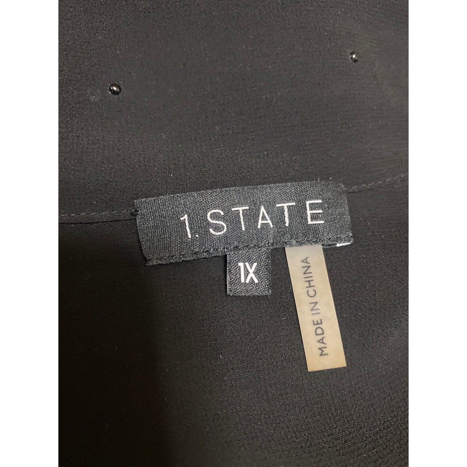 1.State Women's Black Chiffon Pleated Long Sleeve Sheer Tunic Blouse Top Size XL