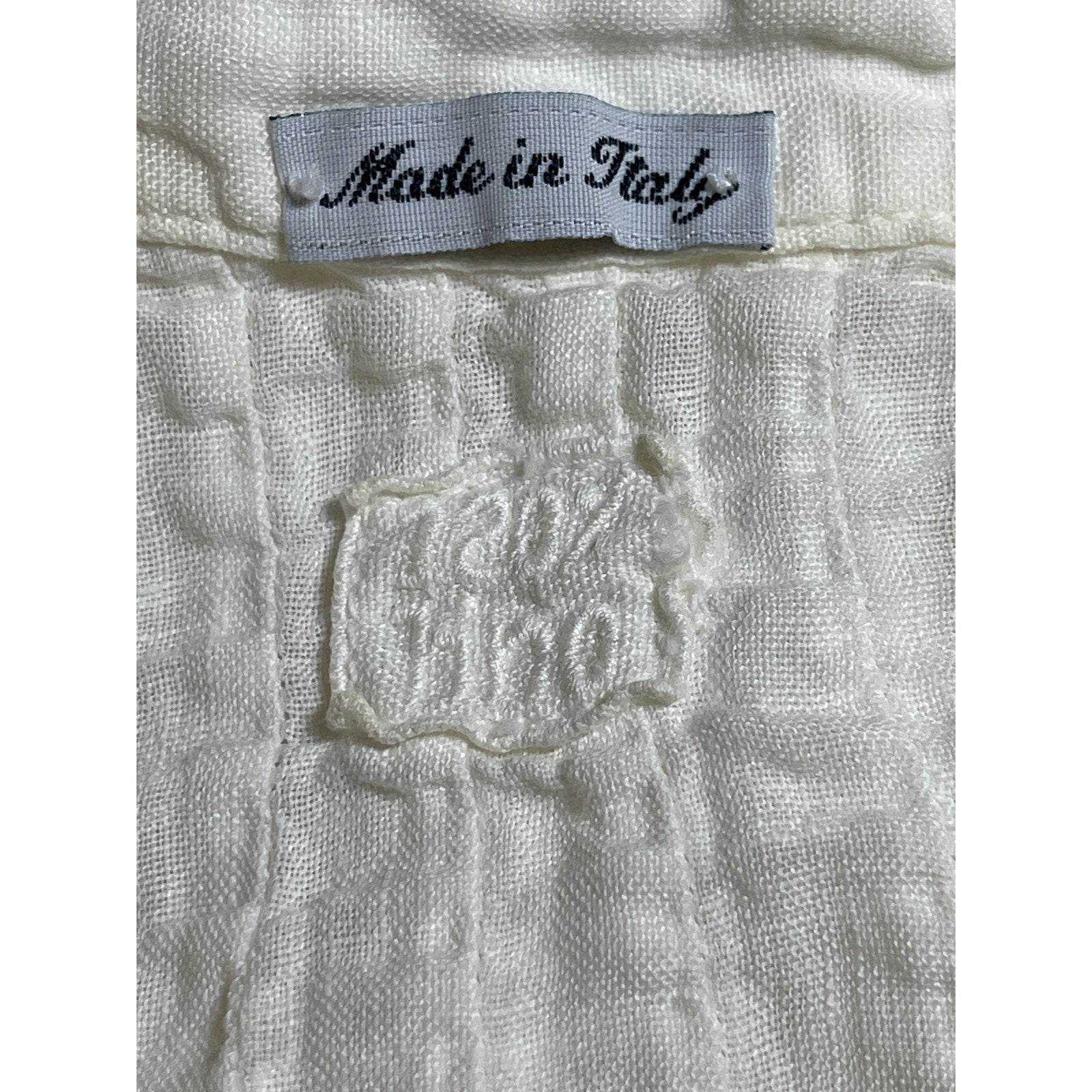 120% Lino Women's White Linen Crinkled V Neck Long Sleeve Tunic Blouse Top S/M