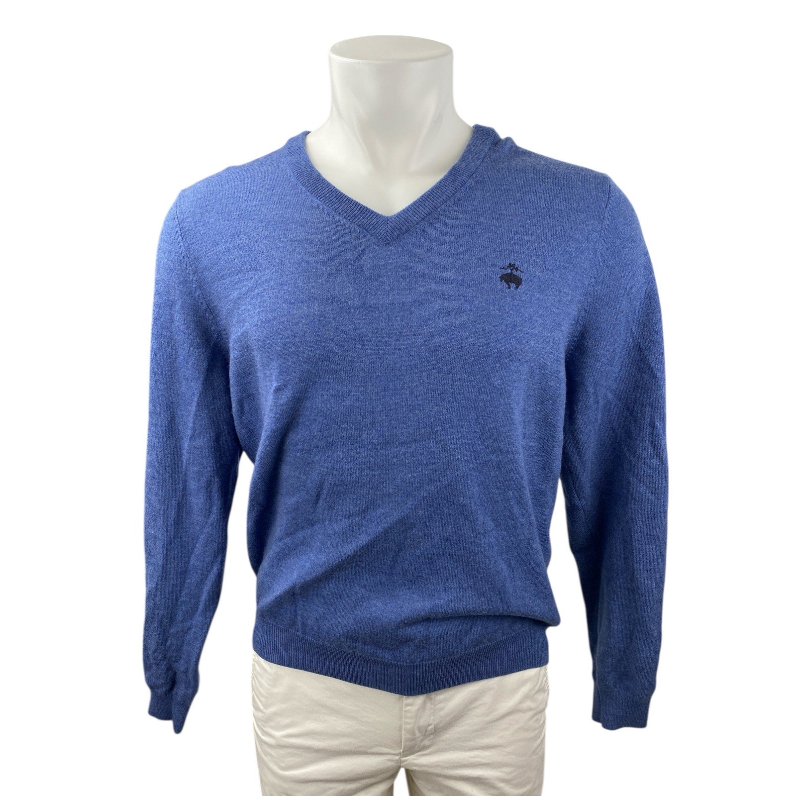 346 Brooks Brother Men's Blue Wool Knit V Neck Long Sleeve Sweater Top Size M