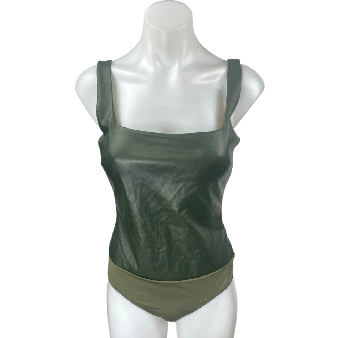 4SI3NNAI Marlena Green Sleeveless Faux Leather Vegan Open Back Tank Bodysuit Top Size XS