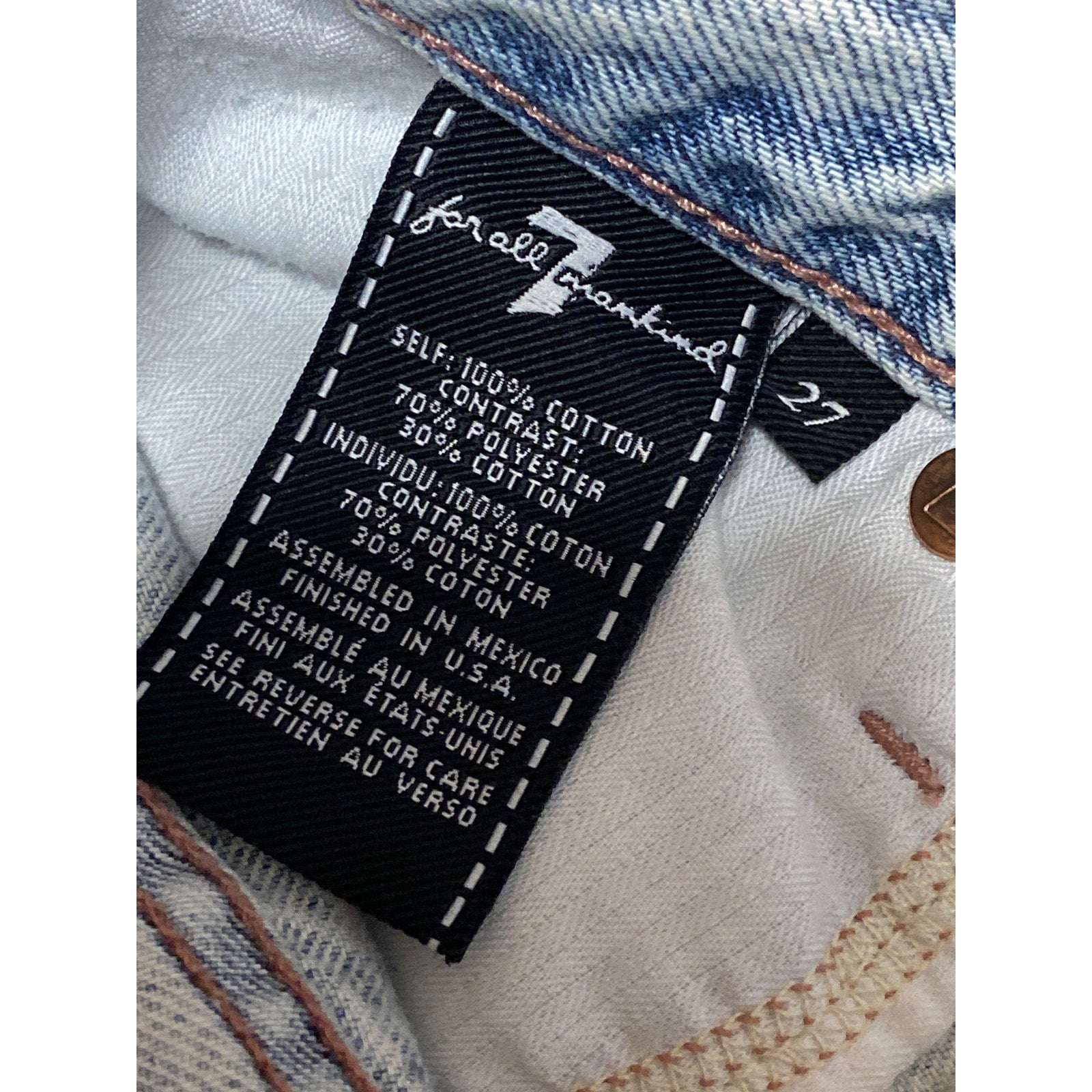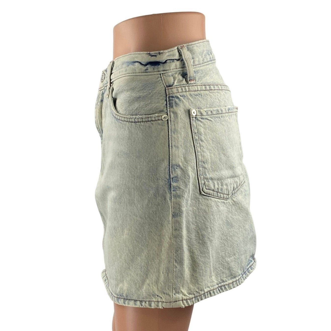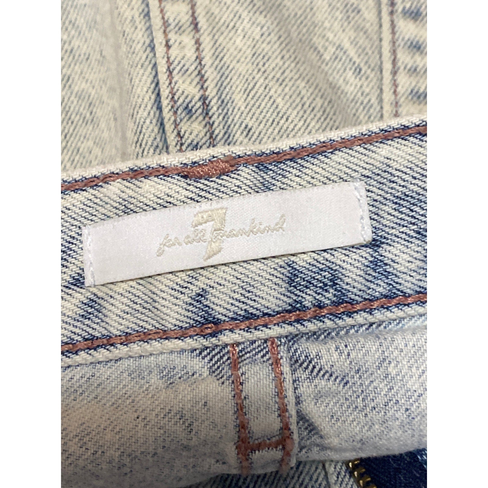 7 For All Mankind Blue Acid Wash High Waisted Straight Denim Jean Skirt Size 27
