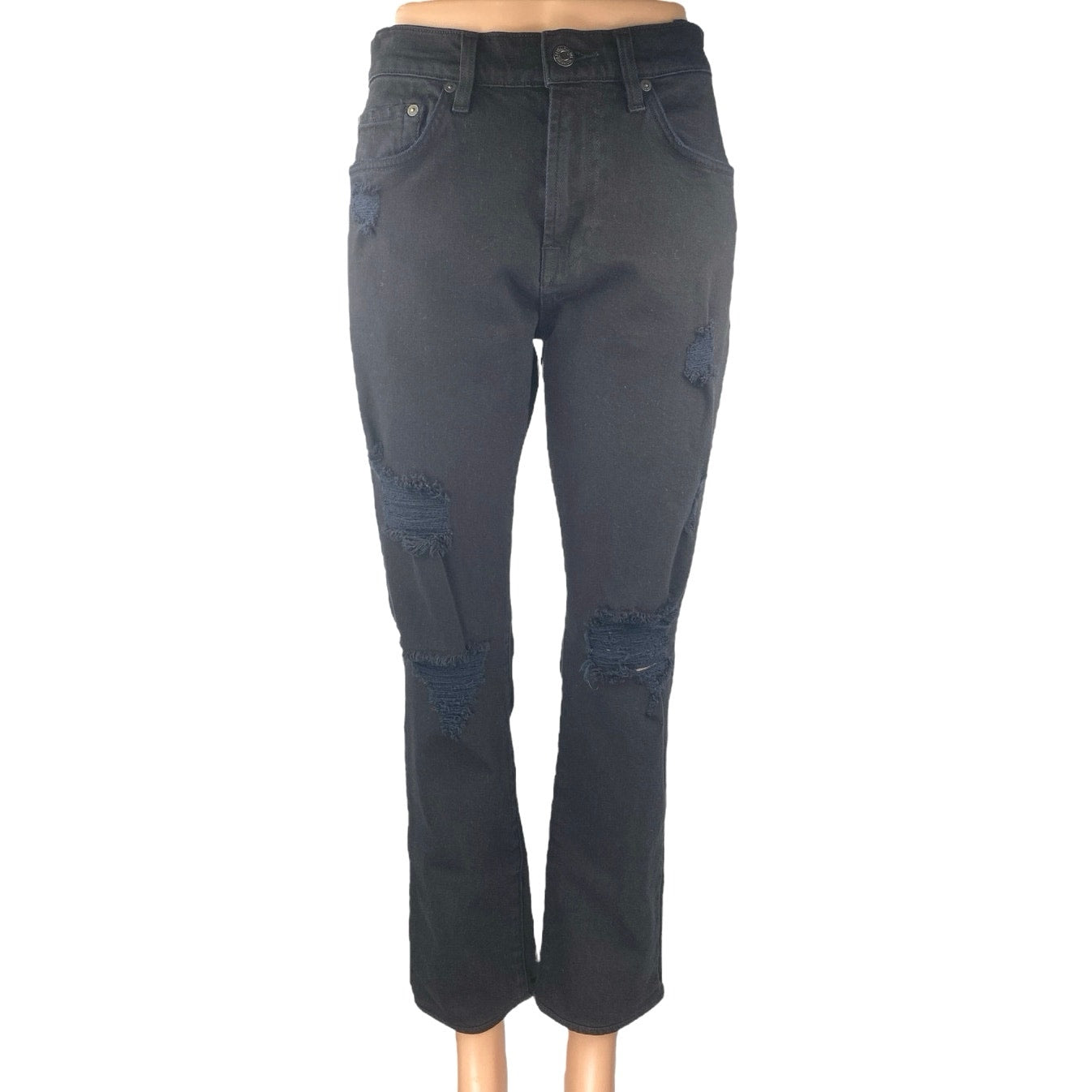 7 For All Mankind Paxtyn Black Distressed High Waist Bootcut Denim Jeans Size 30