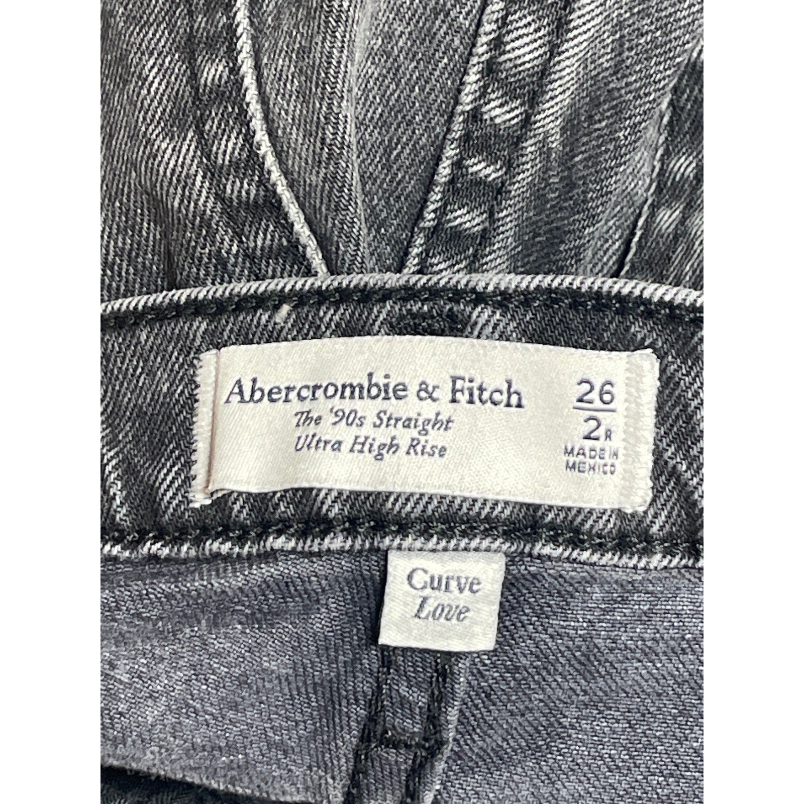 Abercrombie & Fitch 90's Straight Black Ultra High Rise Denim Jeans Pants Size 26