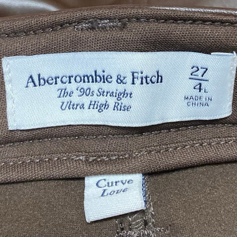 Abercrombie & Fitch 90's Straight Brown Faux Vegan Leather Ultra High Rise Trousers Pants Size 27