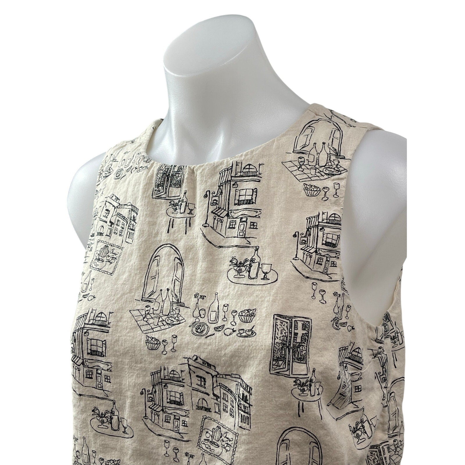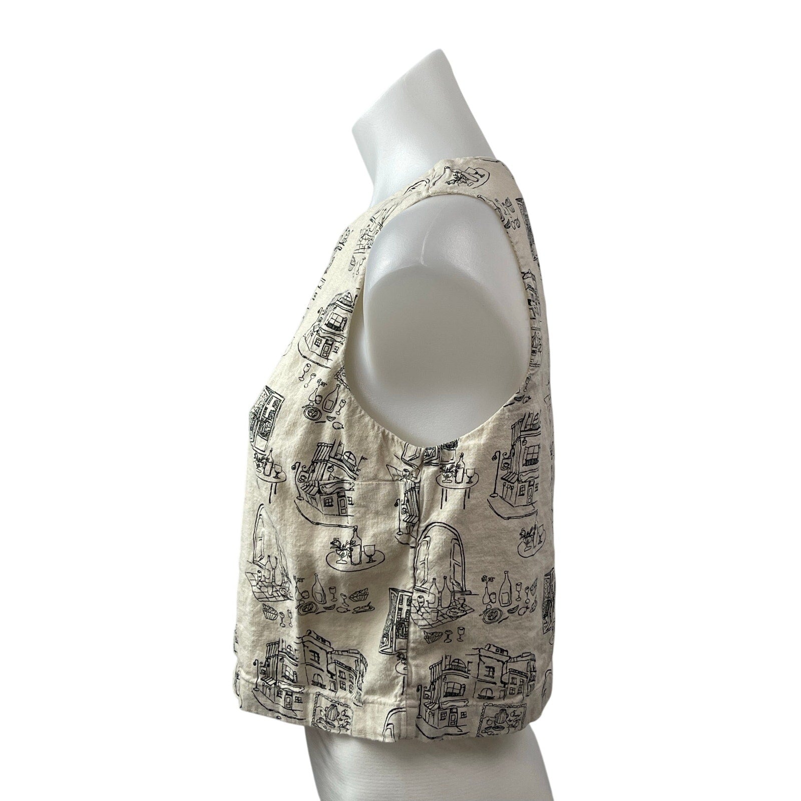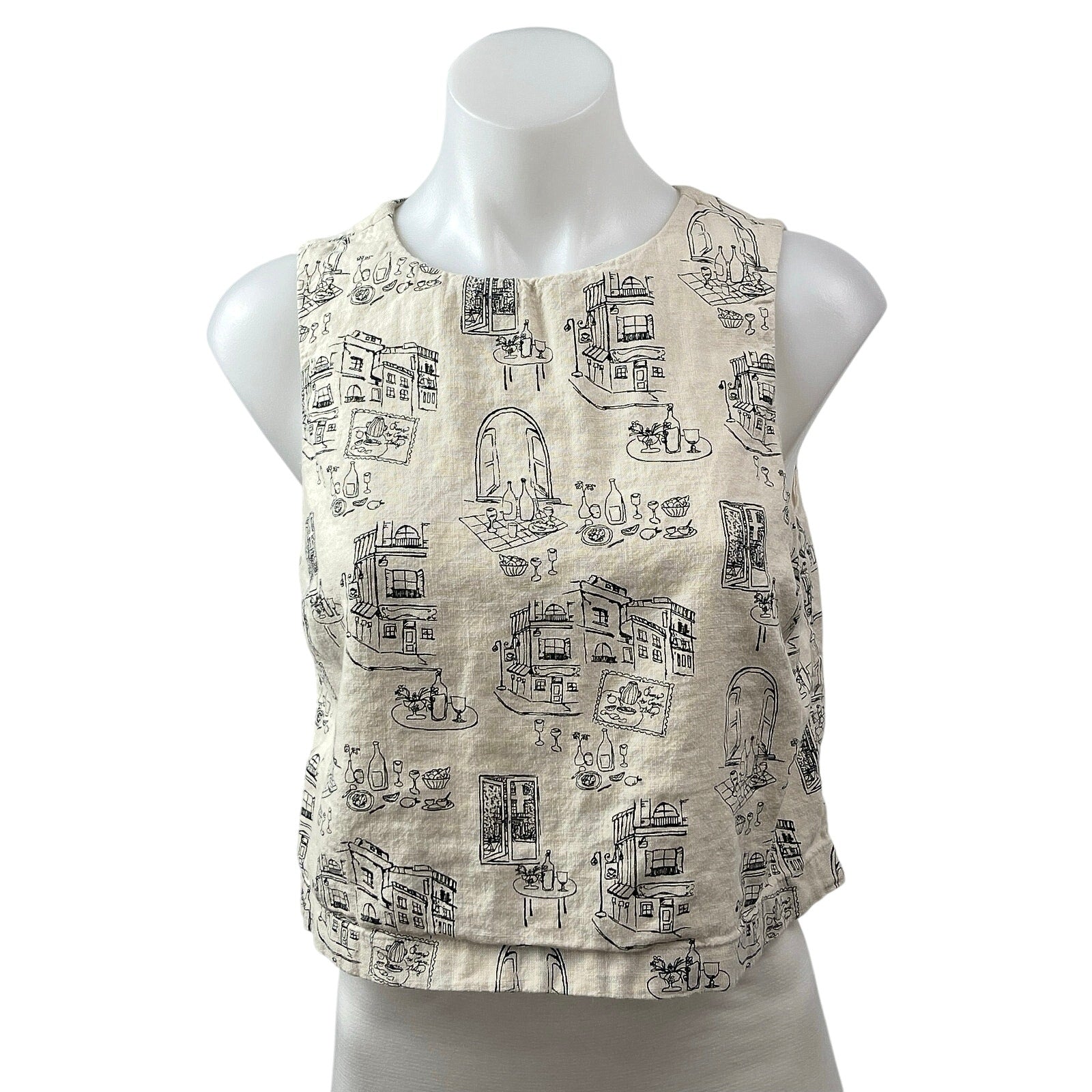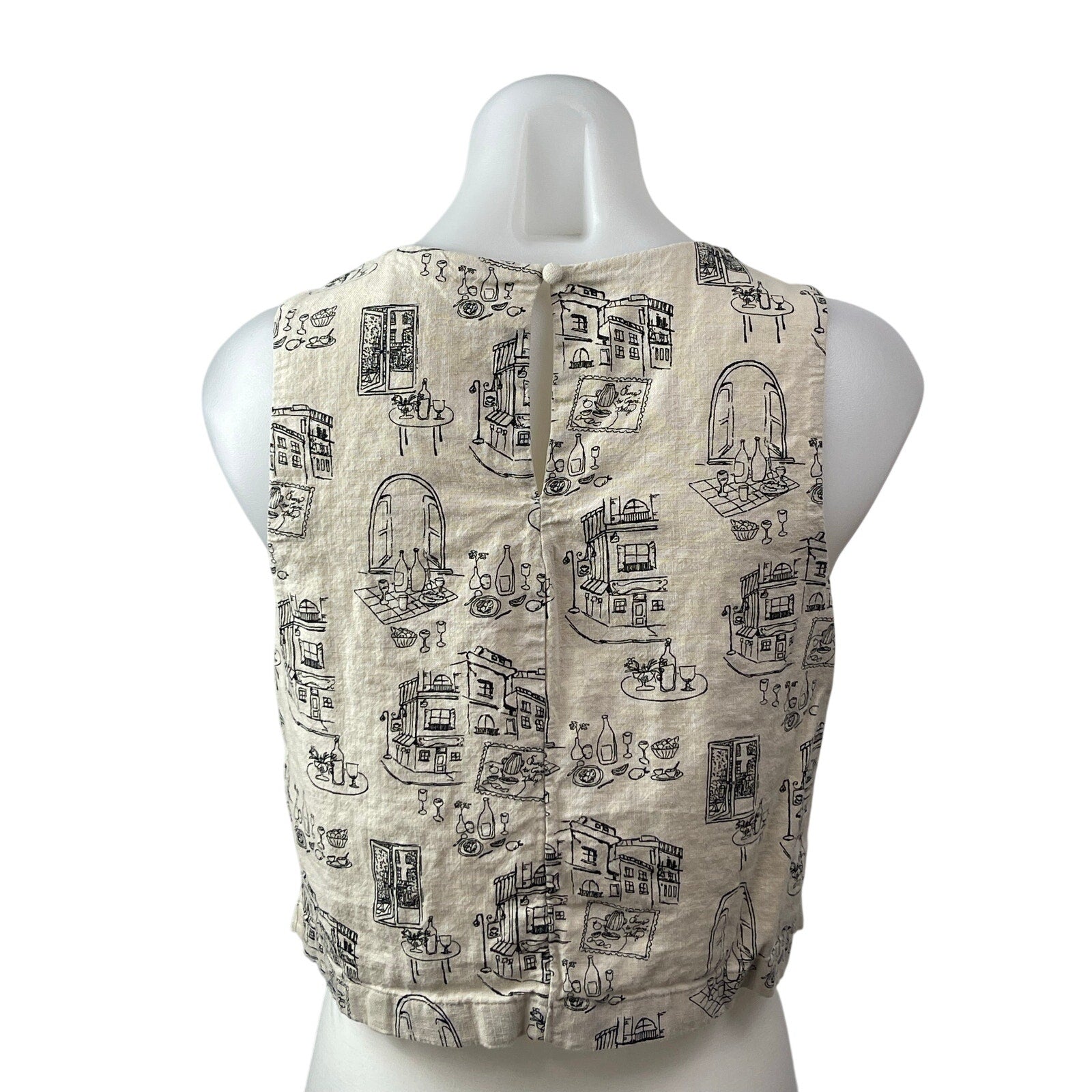 Abercrombie & Fitch Architectural Sketch Linen Sleeveless Crop Vest Tank Top S