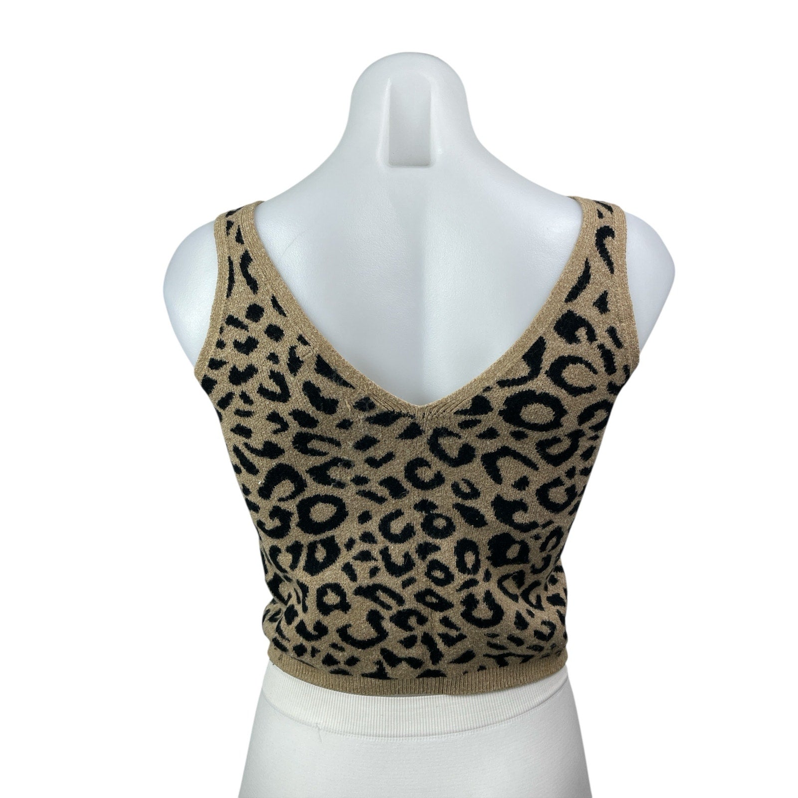 Abercrombie & Fitch Beige Black Leopard Sleeveless V Neck Sweater Tank Top Sz M