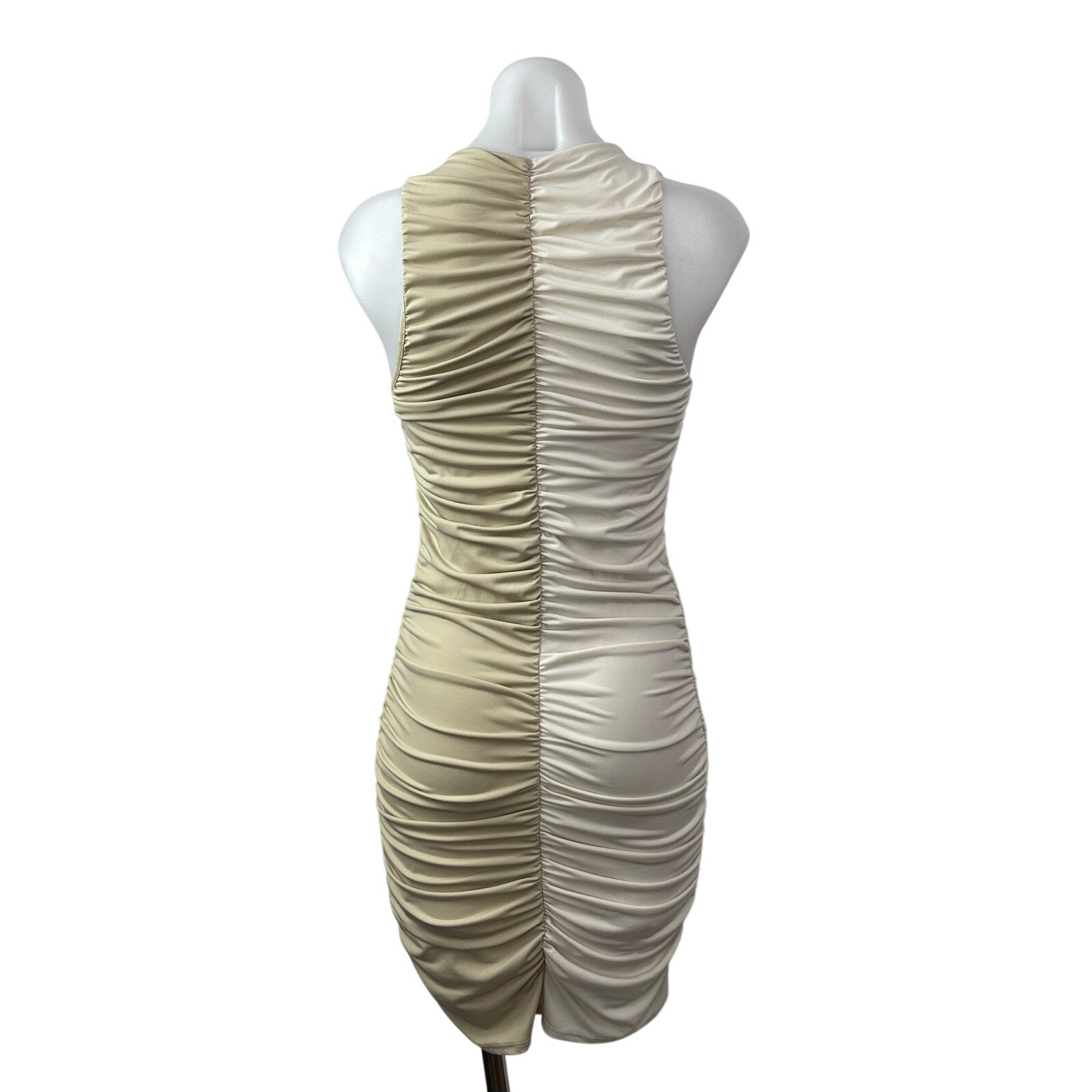 Abercrombie & Fitch Beige Khaki Colorblock Cutout High Neck Mini Bodycon Dress S