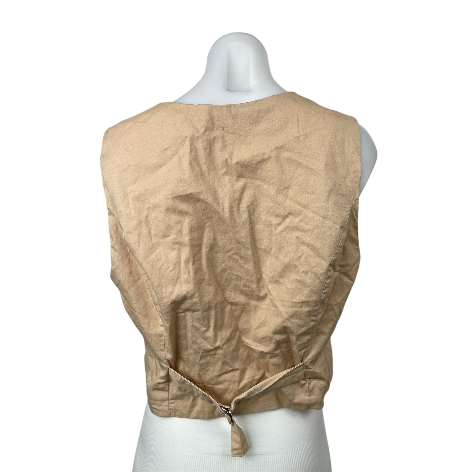 Abercrombie & Fitch Beige Sleeveless V Neck Button Shirt Crop Tank Vest Top Size L