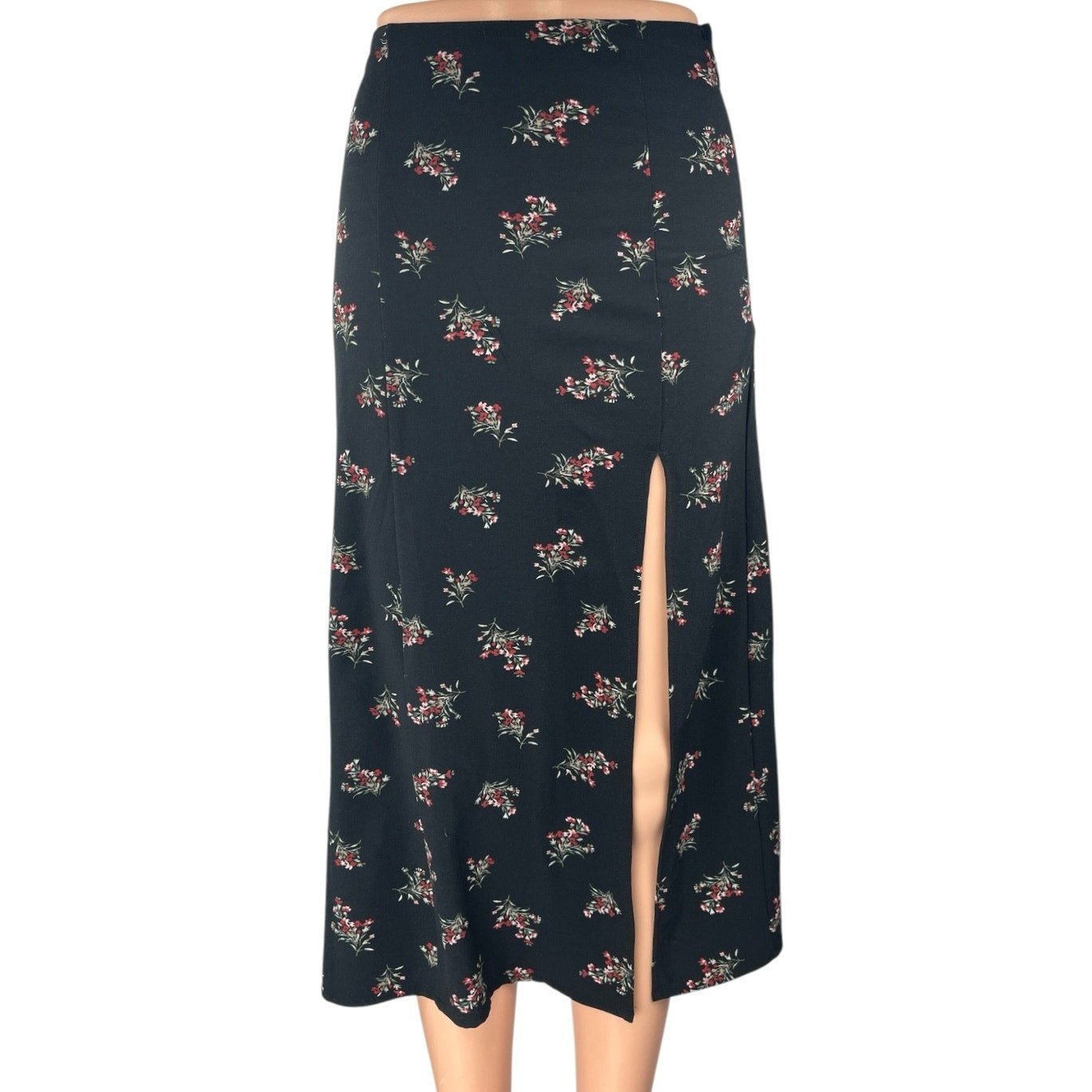 Abercrombie & Fitch Black Floral High Waist Midi High Slit A-Line Skirt Size XXS