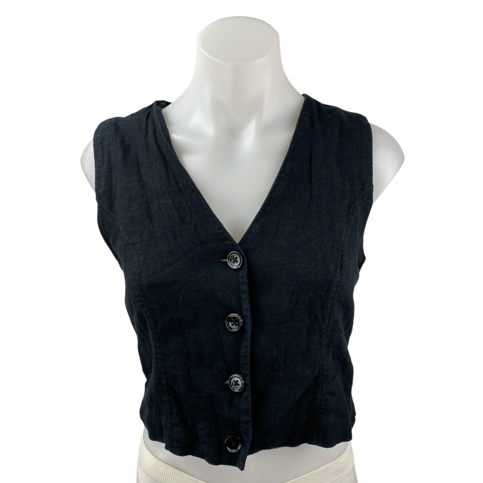 Abercrombie & Fitch Black Linen V Neck Sleeveless Button Up Vest Tank Top Size S