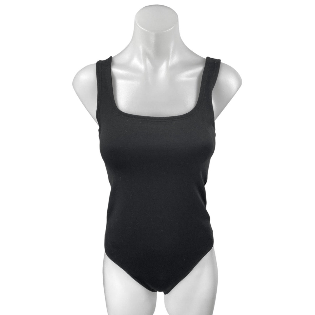 Abercrombie & Fitch Black Sleeveless Square Neck Tank Thong Bodysuit Top Size M