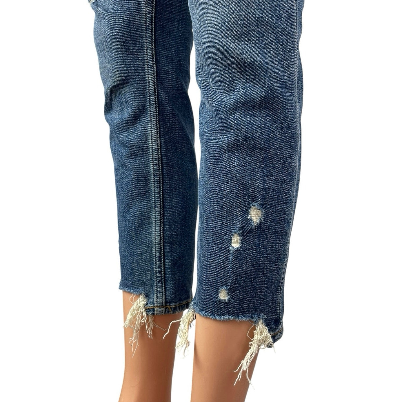 Abercrombie & Fitch Blue Distressed Frayed Raw Hem Skinny Denim Jeans Pants Size 24