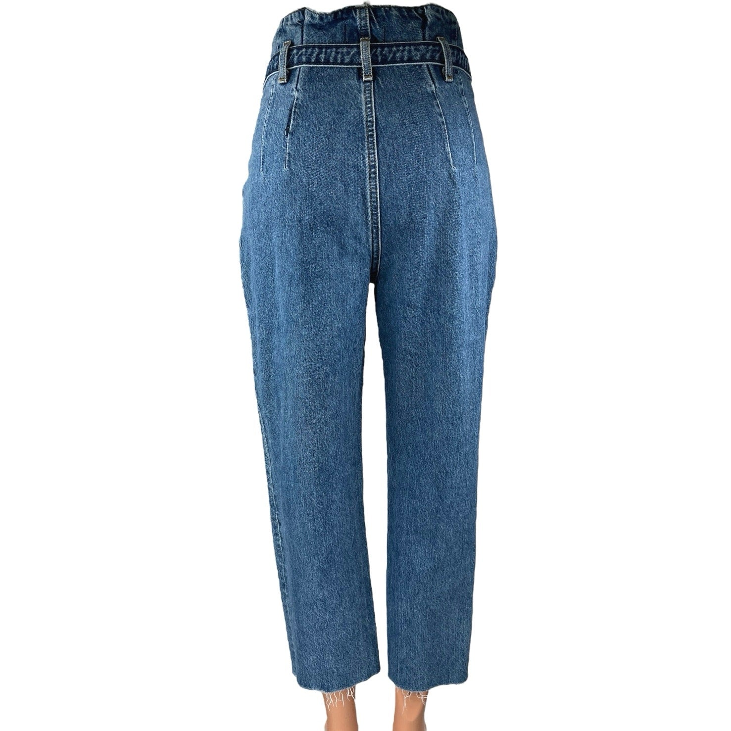 Abercrombie & Fitch Blue High Waist Straight Tapered Belted Paperbag Denim Jeans Pants 4