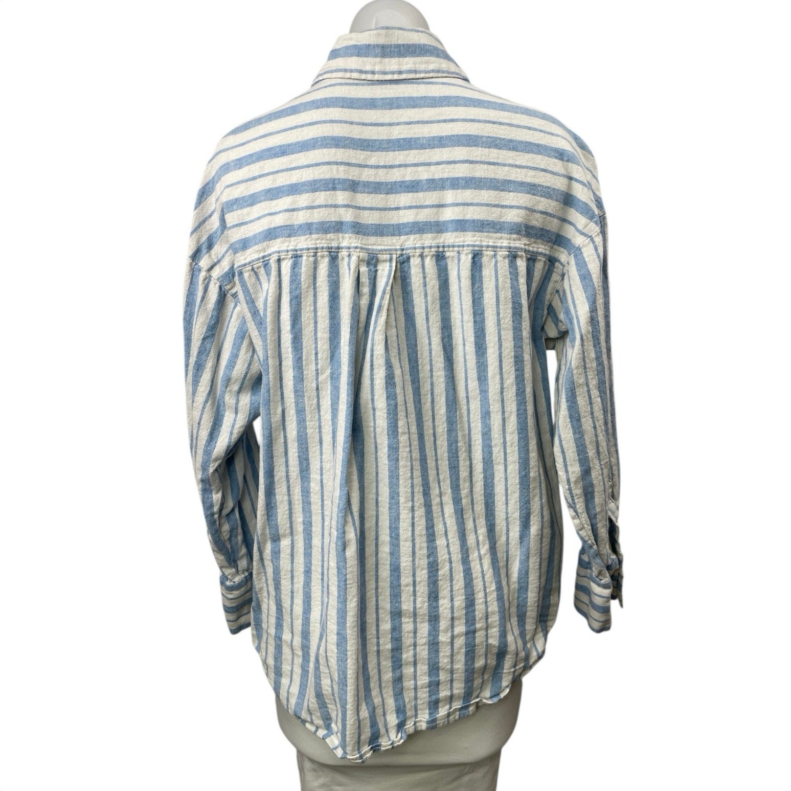 Abercrombie & Fitch Blue Striped Linen Long Sleeve Button Down Shirt Top Size M