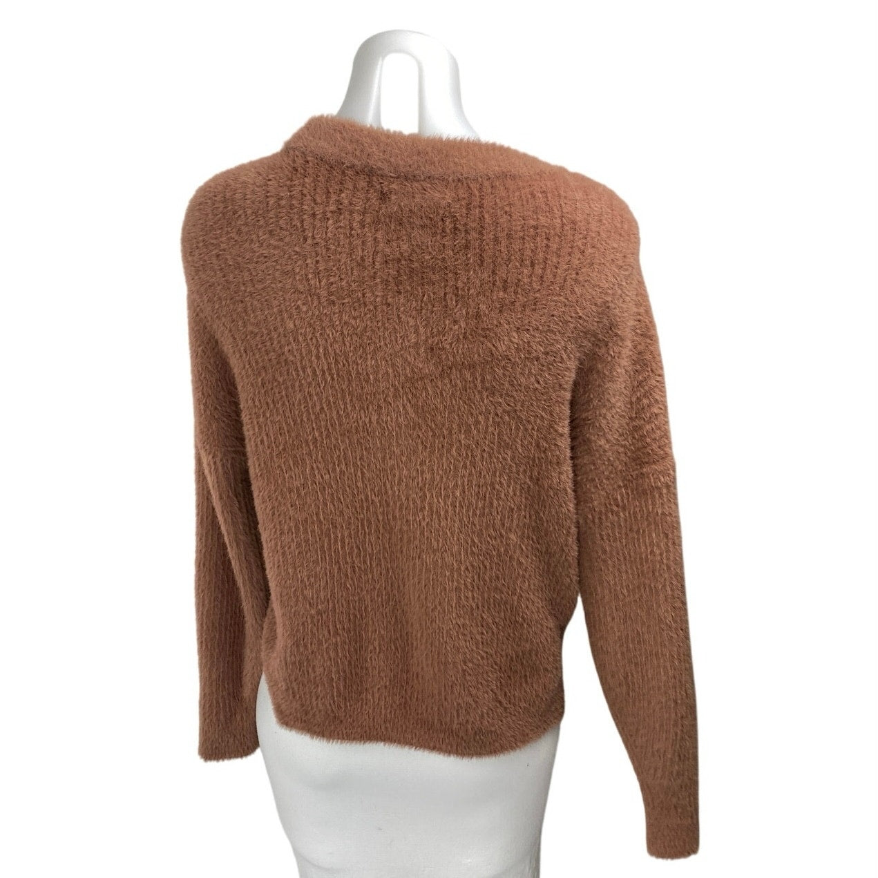 Abercrombie & Fitch Brown Long Sleeve Faux Fur Crew Neck Sweater Top Size XS