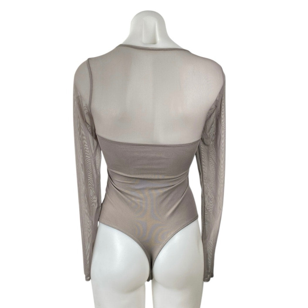 Abercrombie & Fitch Gray Tan Mesh Long Sleeve Square Neck Corset Bodysuit Top S