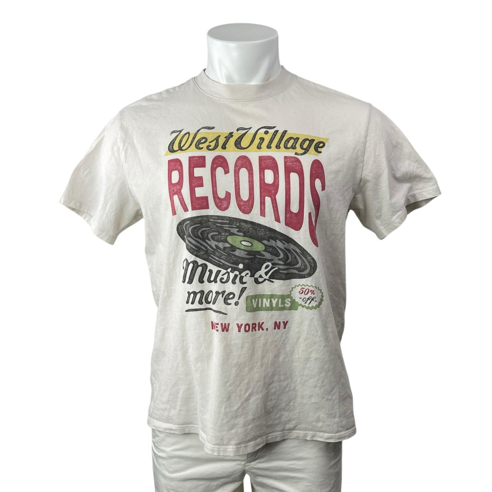 Abercrombie & Fitch Men's White West Village Records Graphic T Shirt Tee Top M