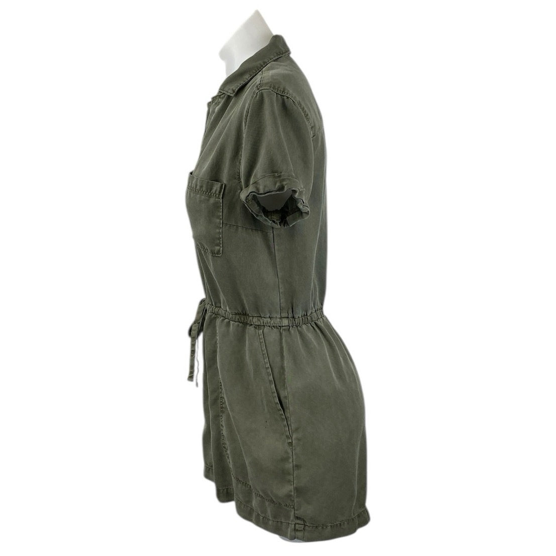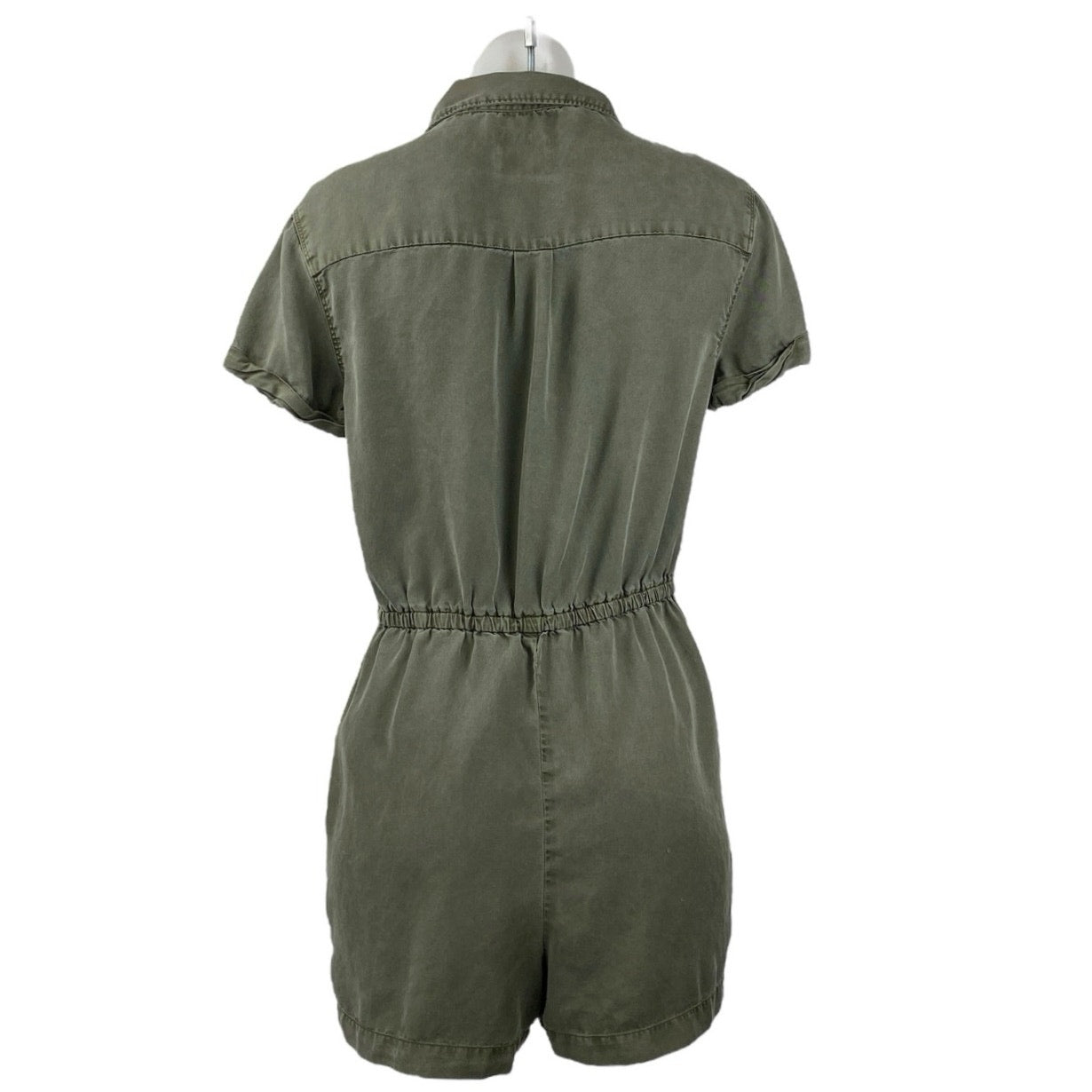 Abercrombie & Fitch Olive Green Short Sleeve Drawstring Button Jumpsuit Romper S