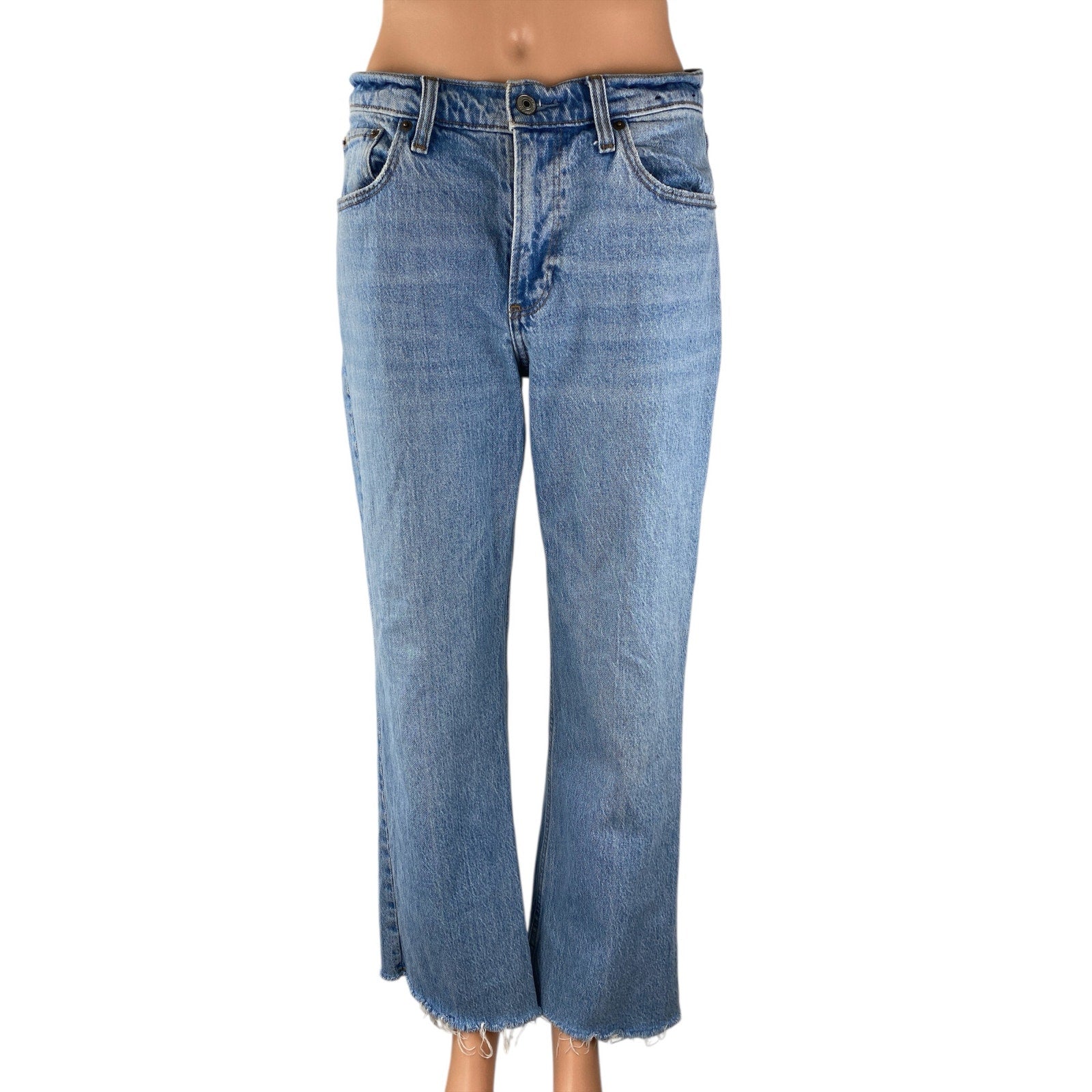 Abercrombie & Fitch The Baggy Low Rise Frayed Hem Straight Denim Jeans Pants 26