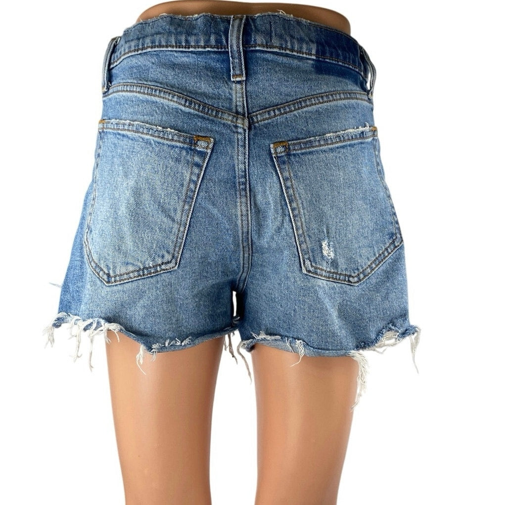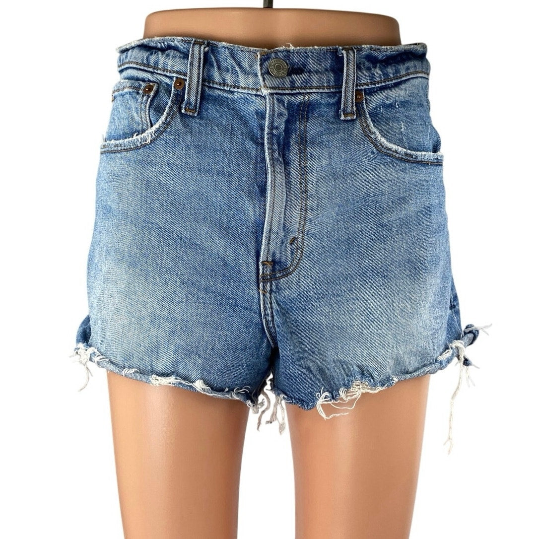 Abercrombie & Fitch The Cutoff High Rise Blue Frayed Hem Denim Jean Shorts 26