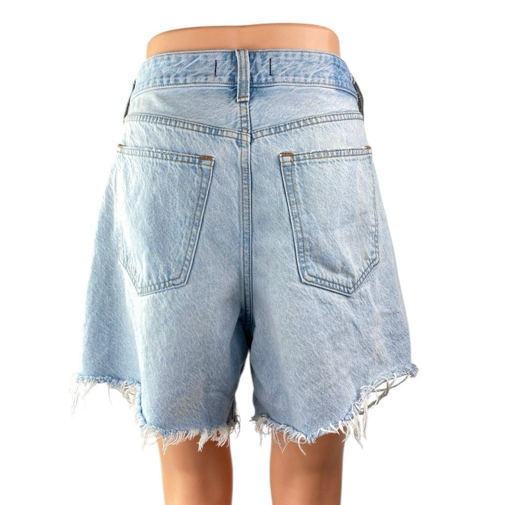 Abercrombie & Fitch The Loose Blue High Rise Distressed Denim Jeans Shorts Size 30