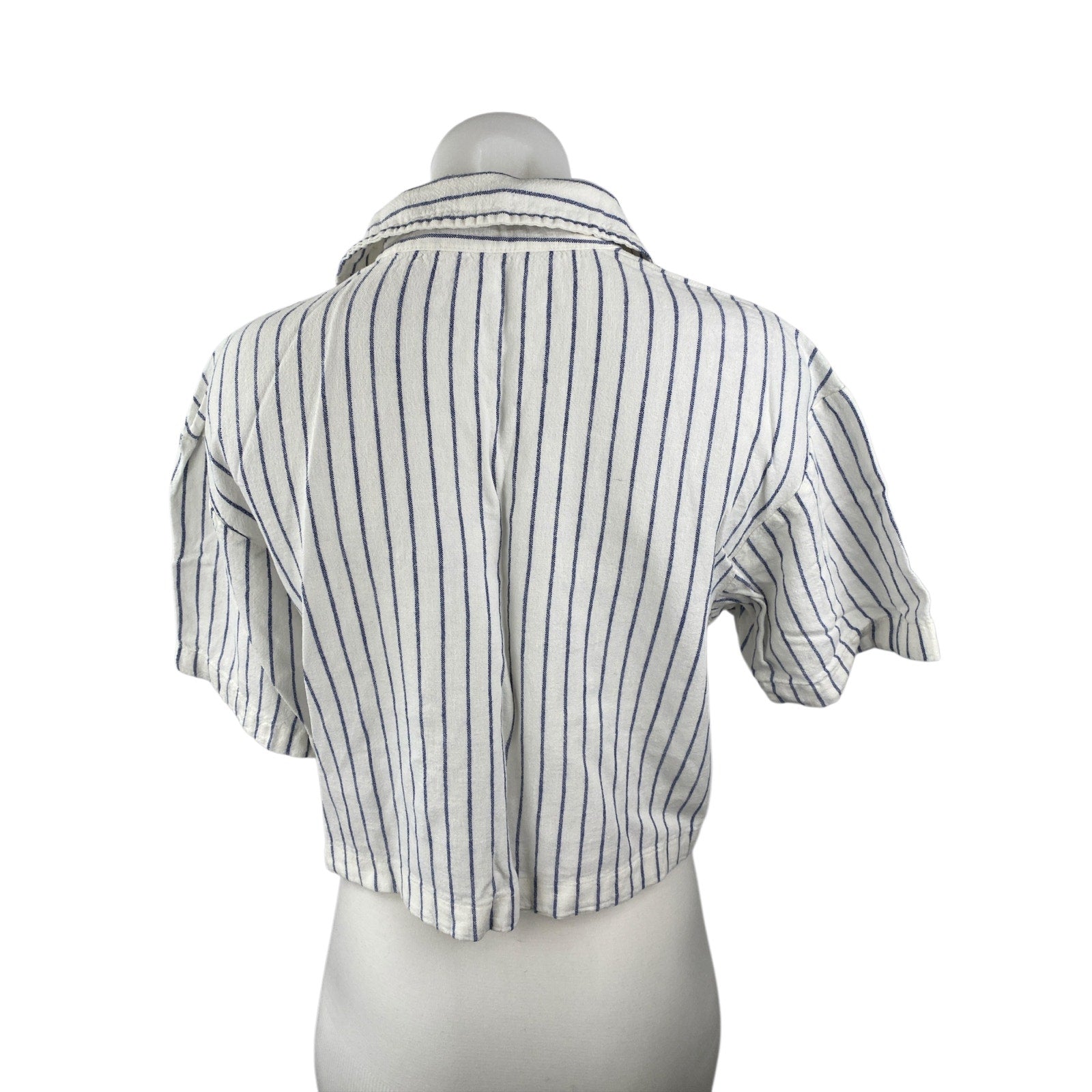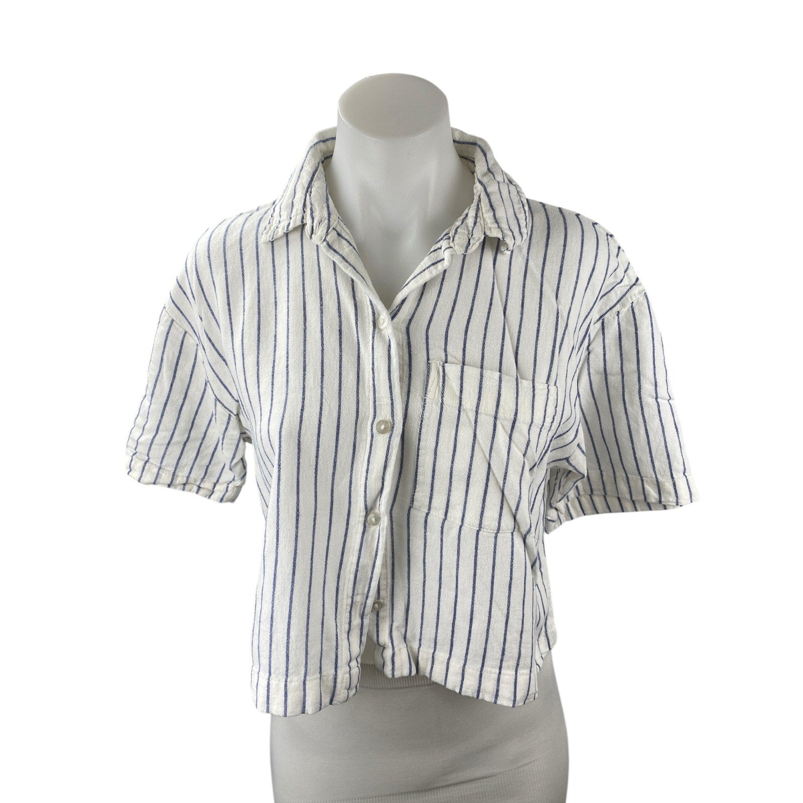 Abercrombie & Fitch White Blue Striped Short Sleeve Cropped Button Up Shirt S
