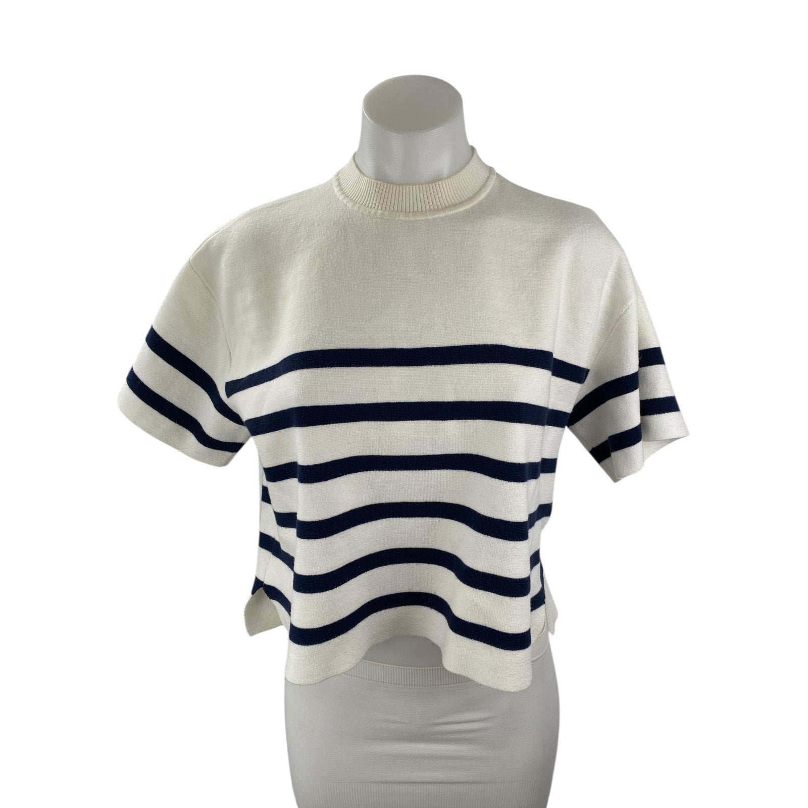 Abercrombie & Fitch White Blue Striped Short Sleeve Mock Neck Sweater Top Sz M
