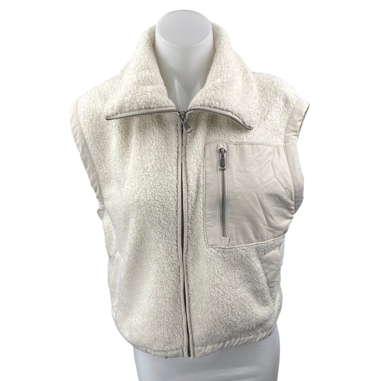 Abercrombie & Fitch White Faux Fur Sherpa Full Zip Sleeveless Vest Jacket XS