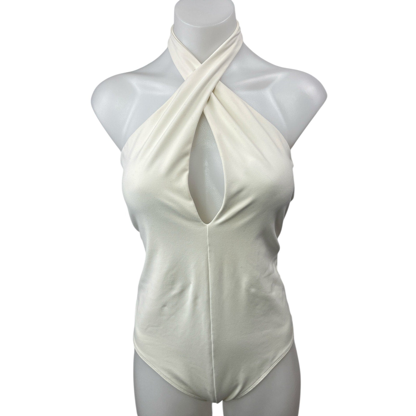 Abercrombie & Fitch White Halter Keyhole Sleeveless Open Back Bodysuit Top Sz M