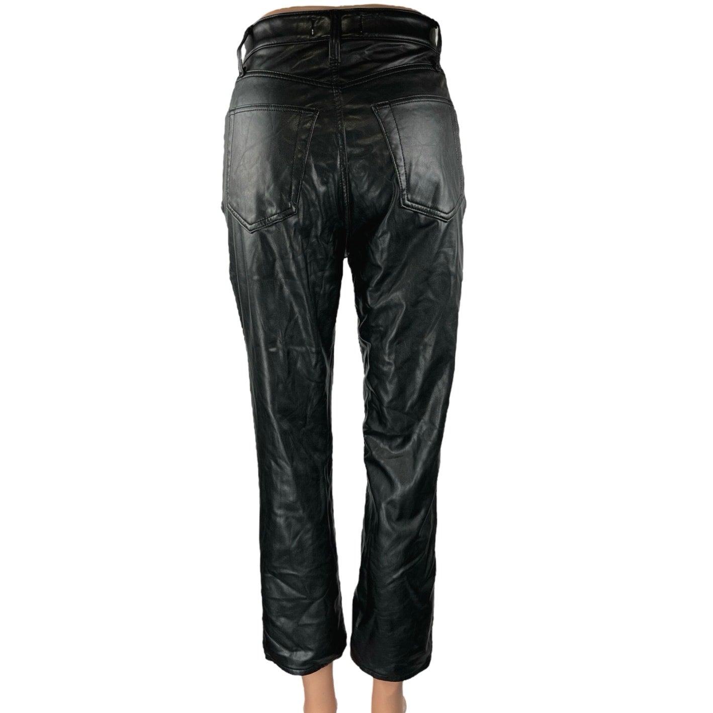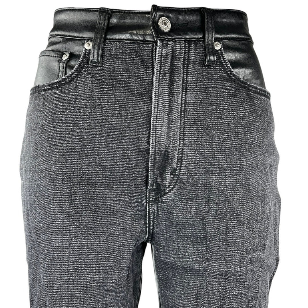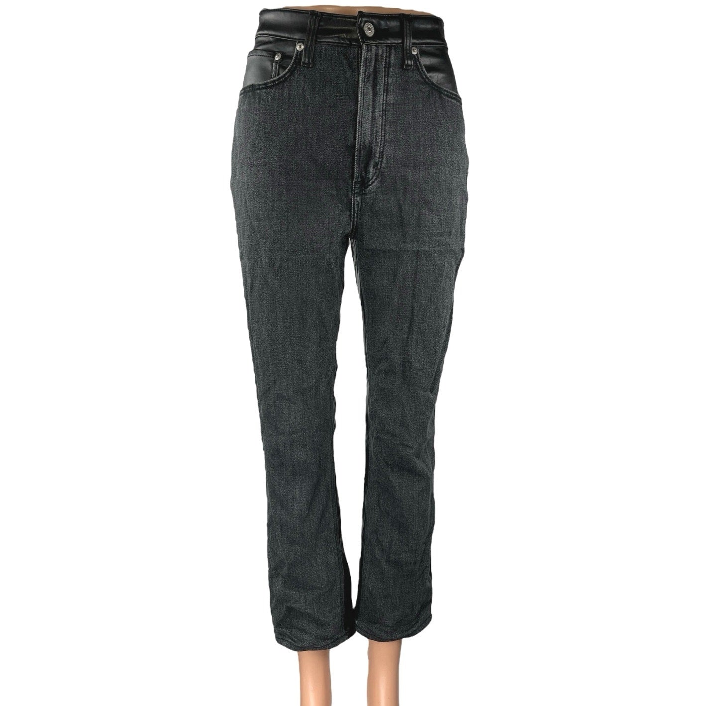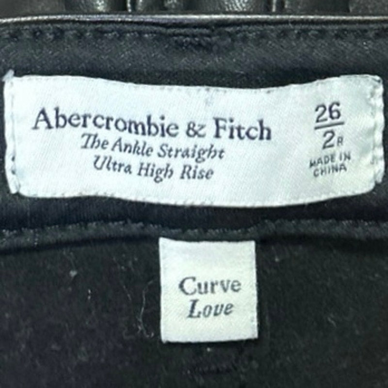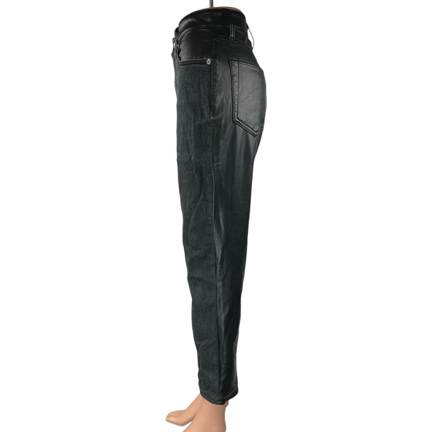 Abercrombie & Fitch Women's Black Two Tone Faux Leather Ankle Straight Ultra High Rise Denim Jeans 2
