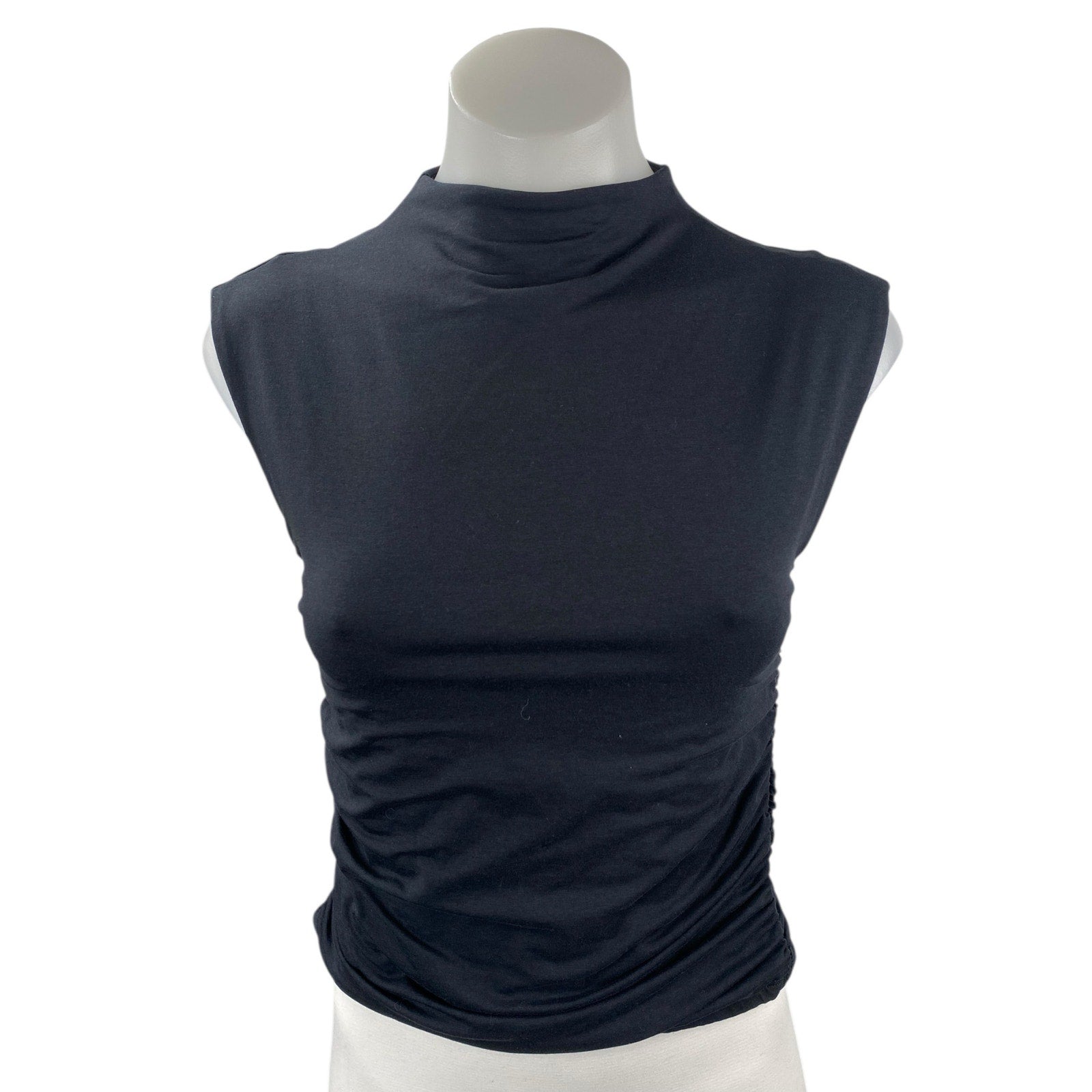 Abercrombie & Fitch Women's Black Sleeveless Mock Neck Ruched Tank Top Size S