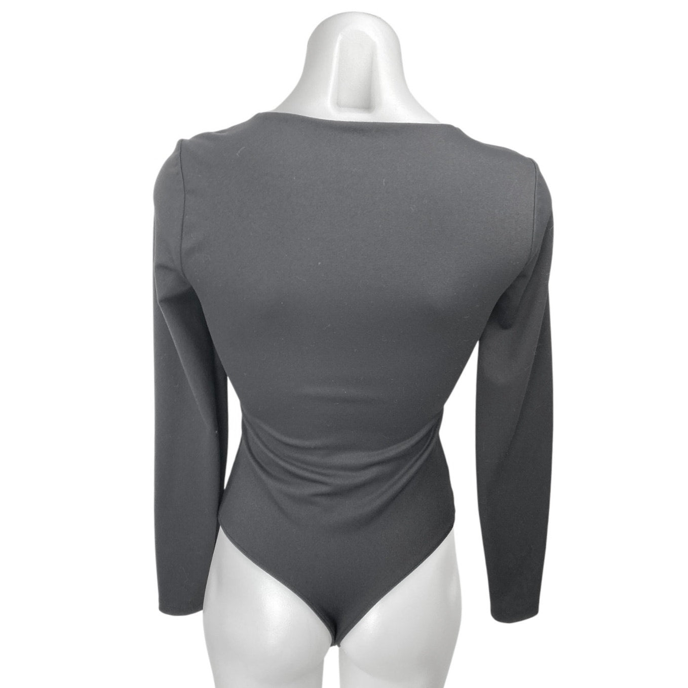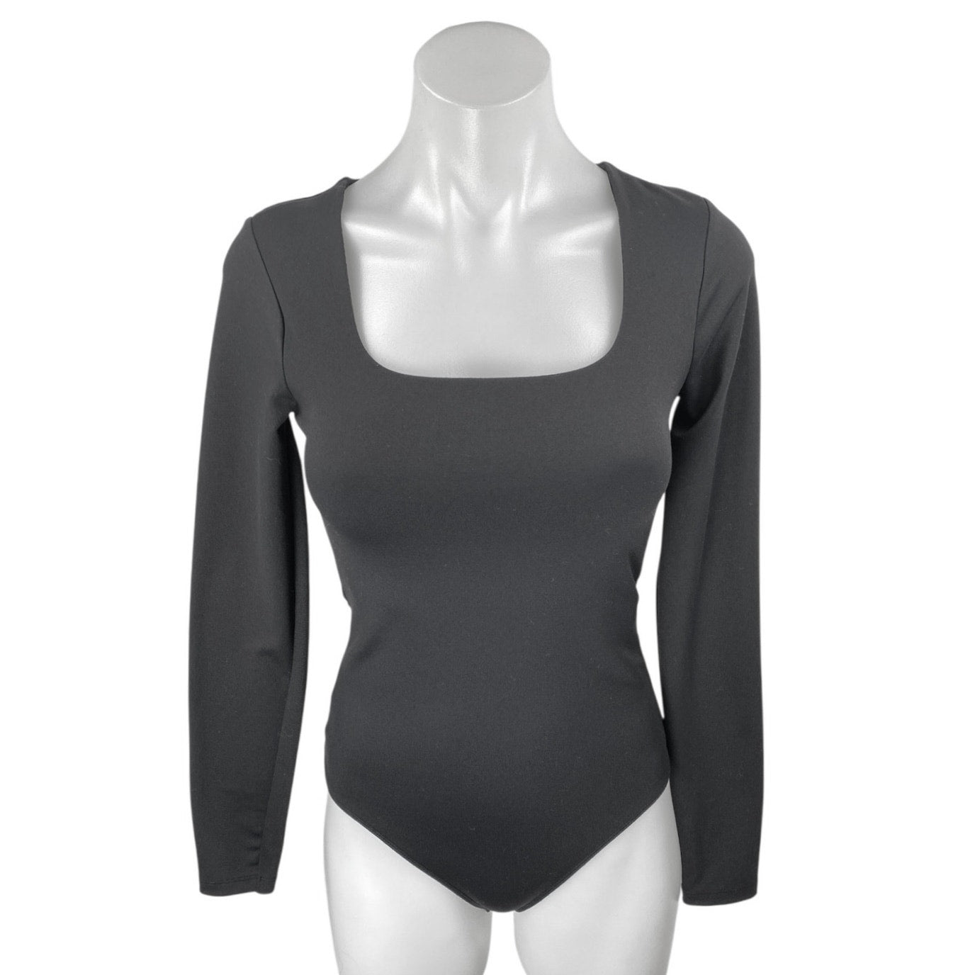 Abercrombie & Fitch Womens Black Square Neck Long Sleeve Bodysuit Shirt Top Size S