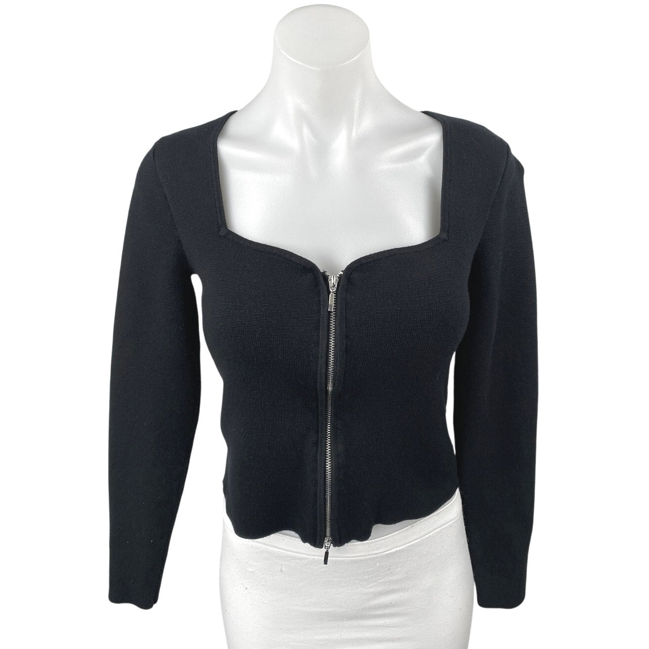 Abercrombie & Fitch Women's Black Zip Up Long Sleeve Crop Cardigan Sweater Top M