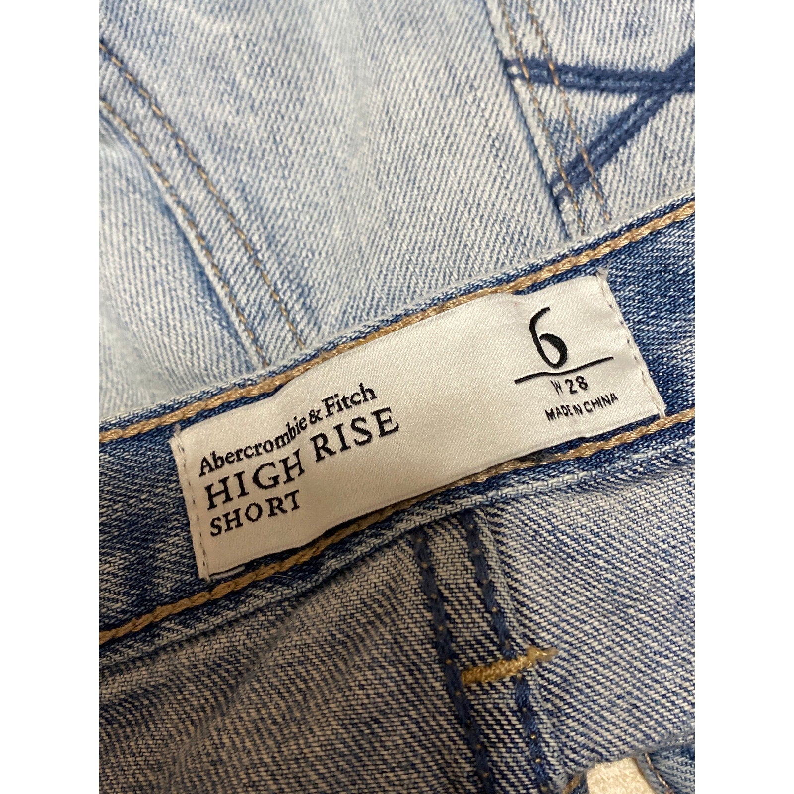 Abercrombie & Fitch Women's Blue High Waist Distressed Patcworks Denim Shorts 6