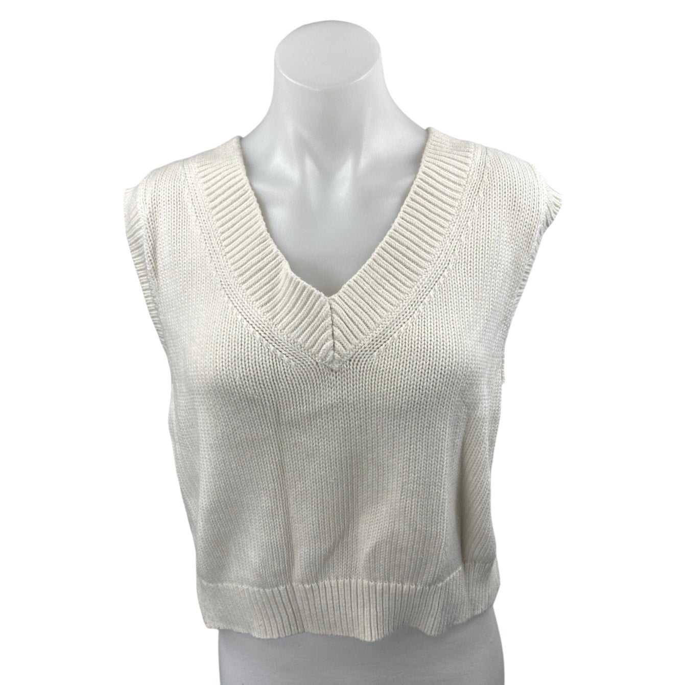 Abercrombie & Fitch Women's Cream Sleeveless V Neck Cropped Tank Sweater Top M