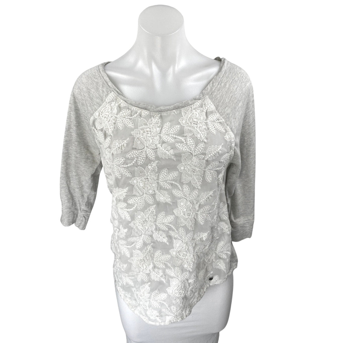 Abercrombie & Fitch Womens Gray Floral Lace Embroidered Half Sleeve Blouse Top S
