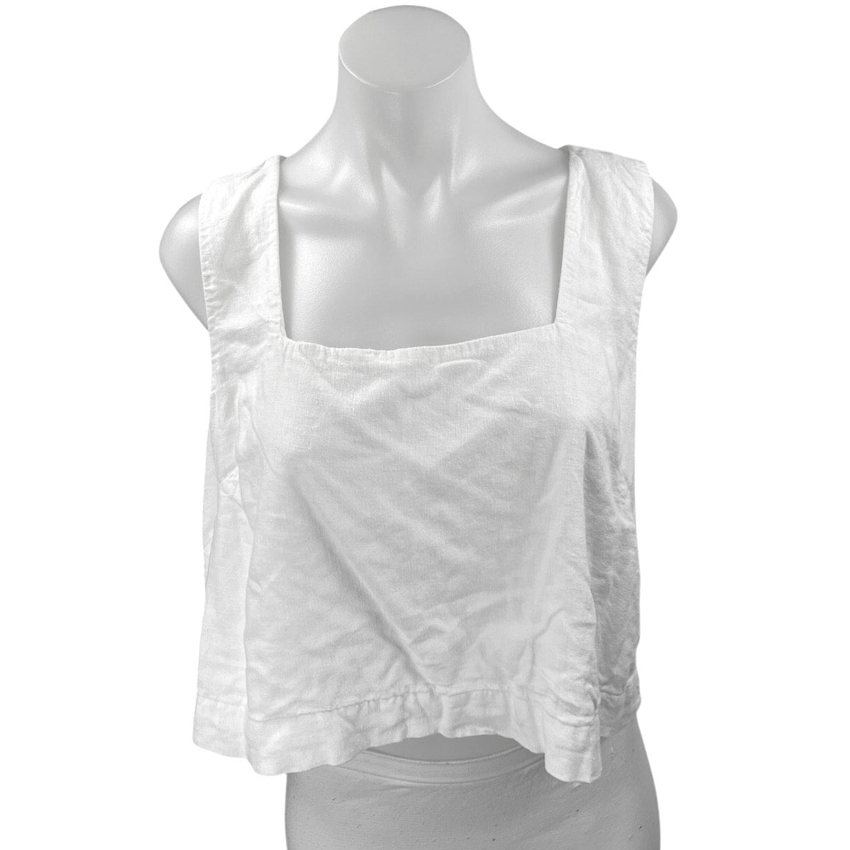 Abercrombie & Fitch Women's White Linen Sleeveless Square Neck Crop Tank Top L