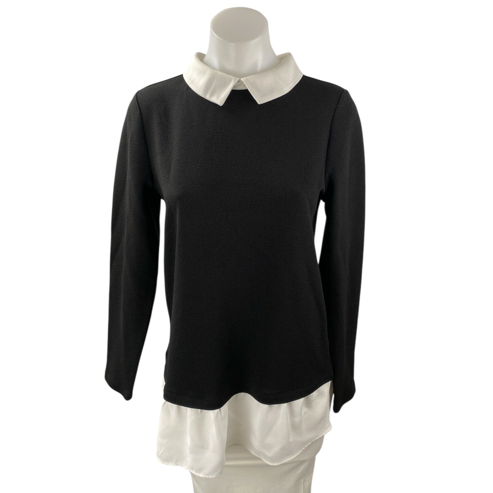 Adrianna Papell Women's Black Collared Layered Long Sleeve Tunic Blouse Top Sz S