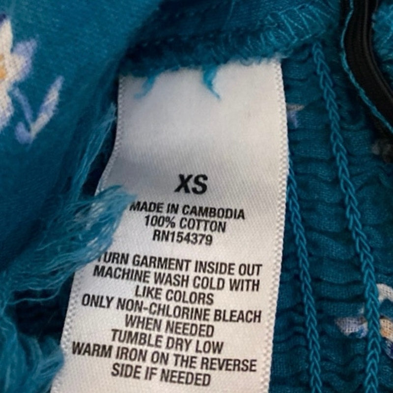 Aeropostale Blue Floral Short Puff Sleeve Frayed Front Tie Slim Crop Top Size XS
