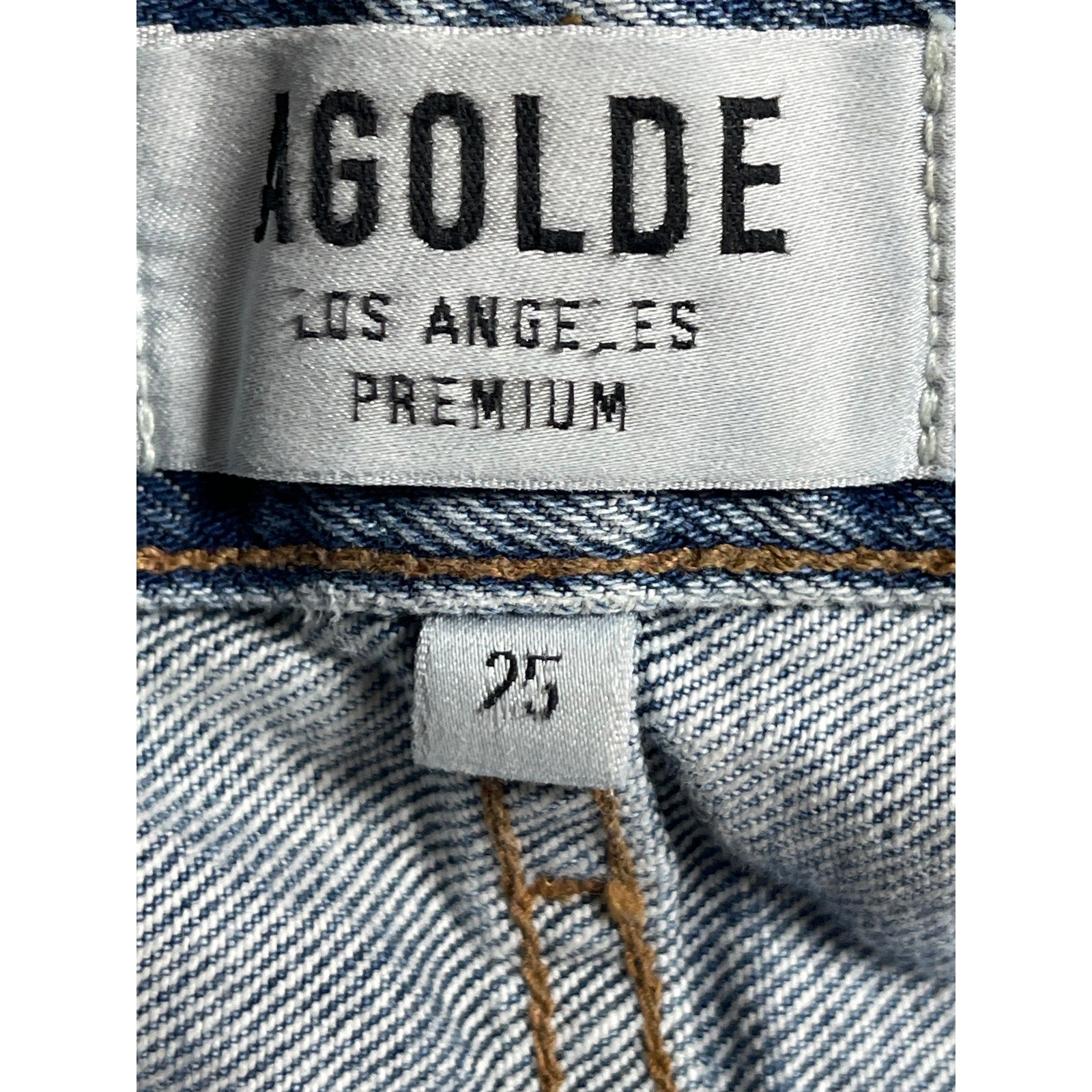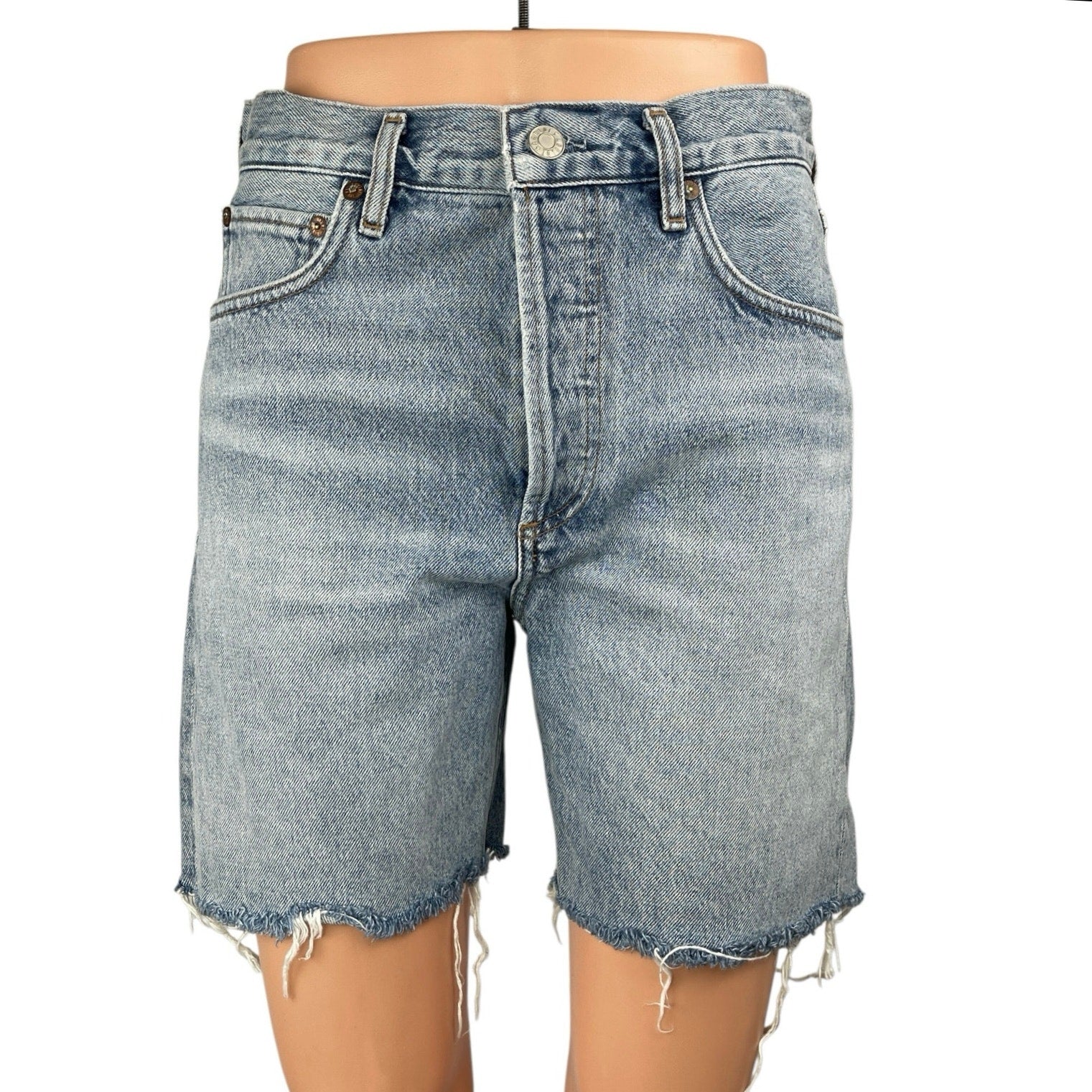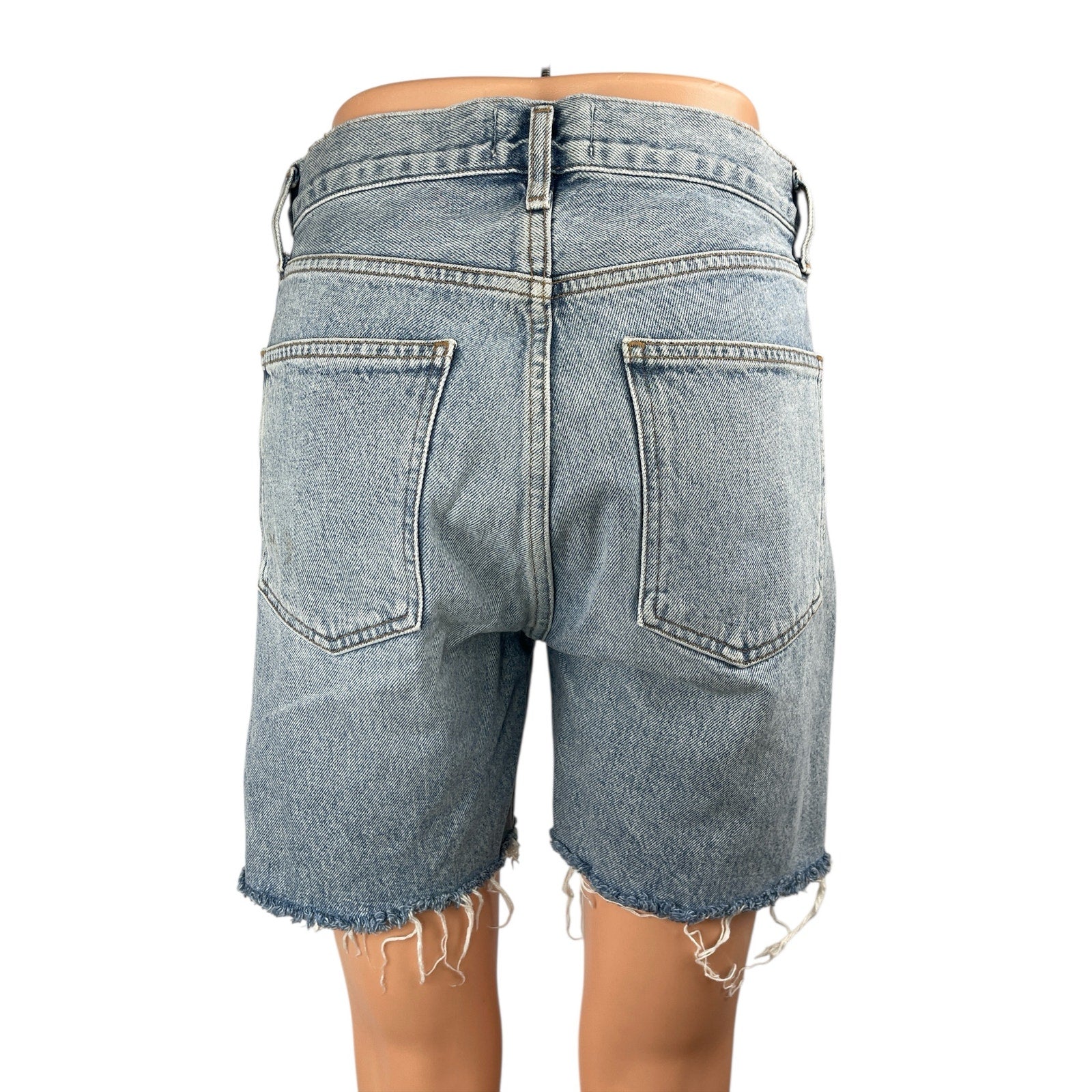 Agolde Blue Light Wash High Rise Frayed Raw Hem Cutoff Boyfriend Denim Shorts 25