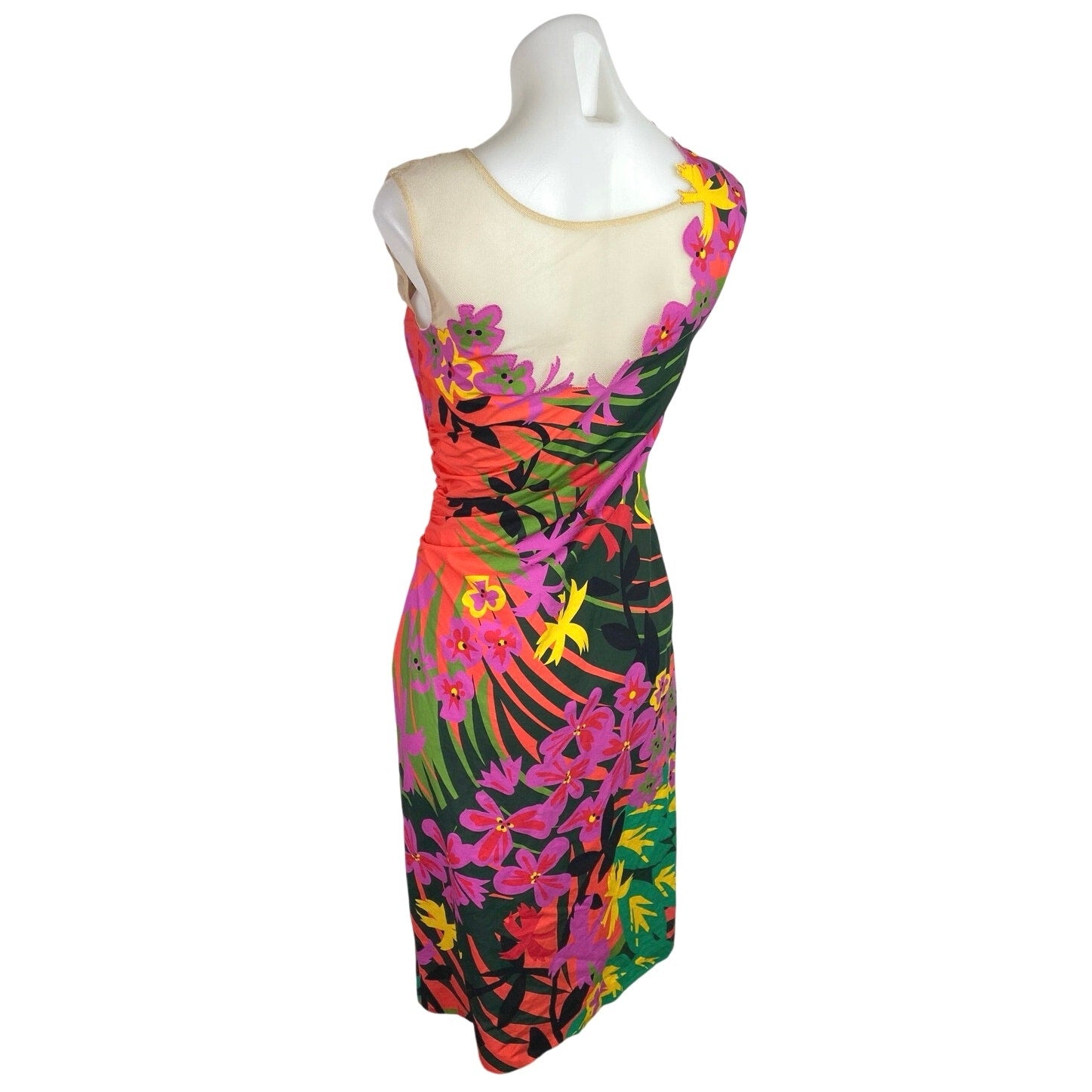 Alberta Ferretti Multicolor Floral Sleeveless Ruched Midi Tank Sheath Dress Size 4