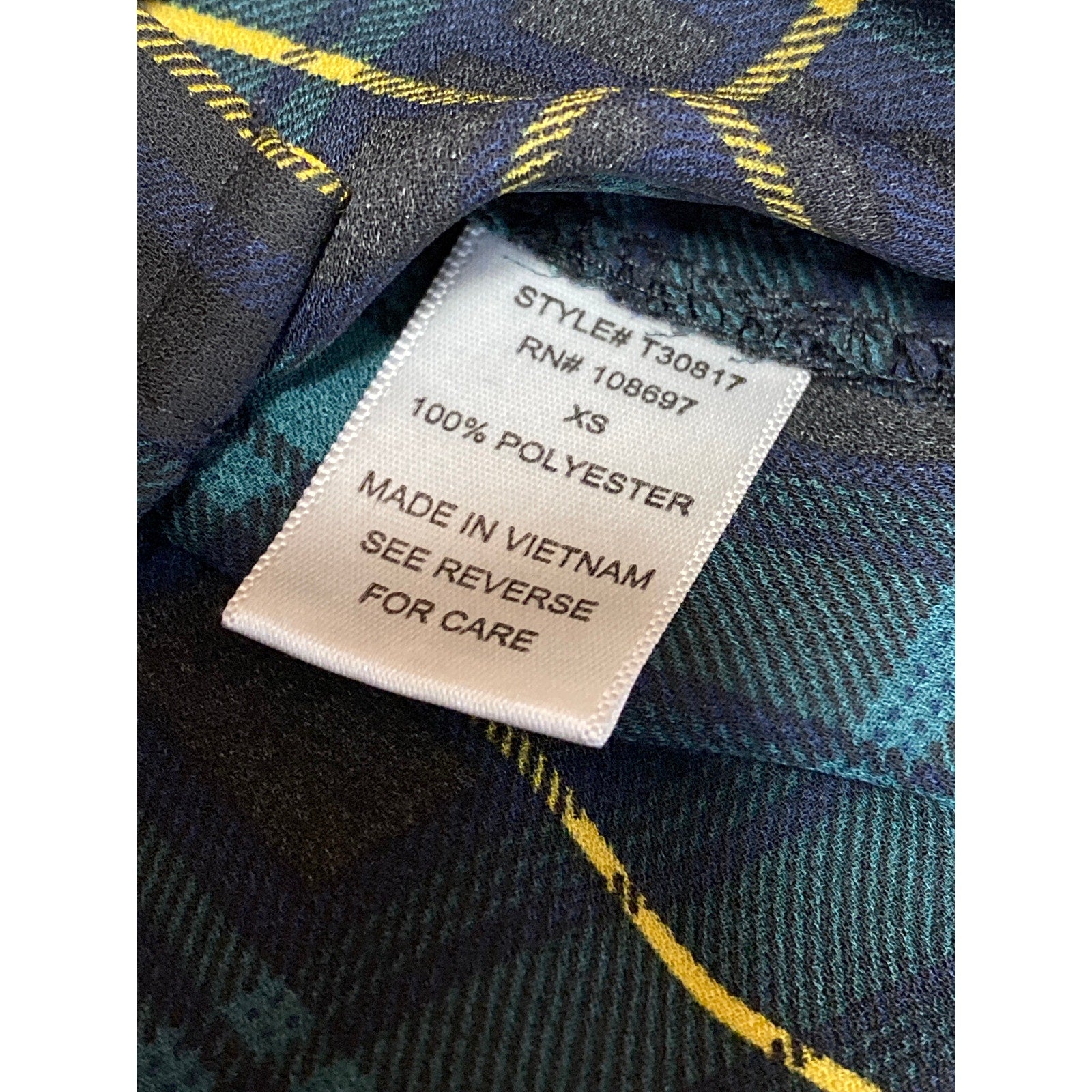 Alice Blue Women's Green Check Plaid Flannel Long Sleeve Button Up Shirt Top XS