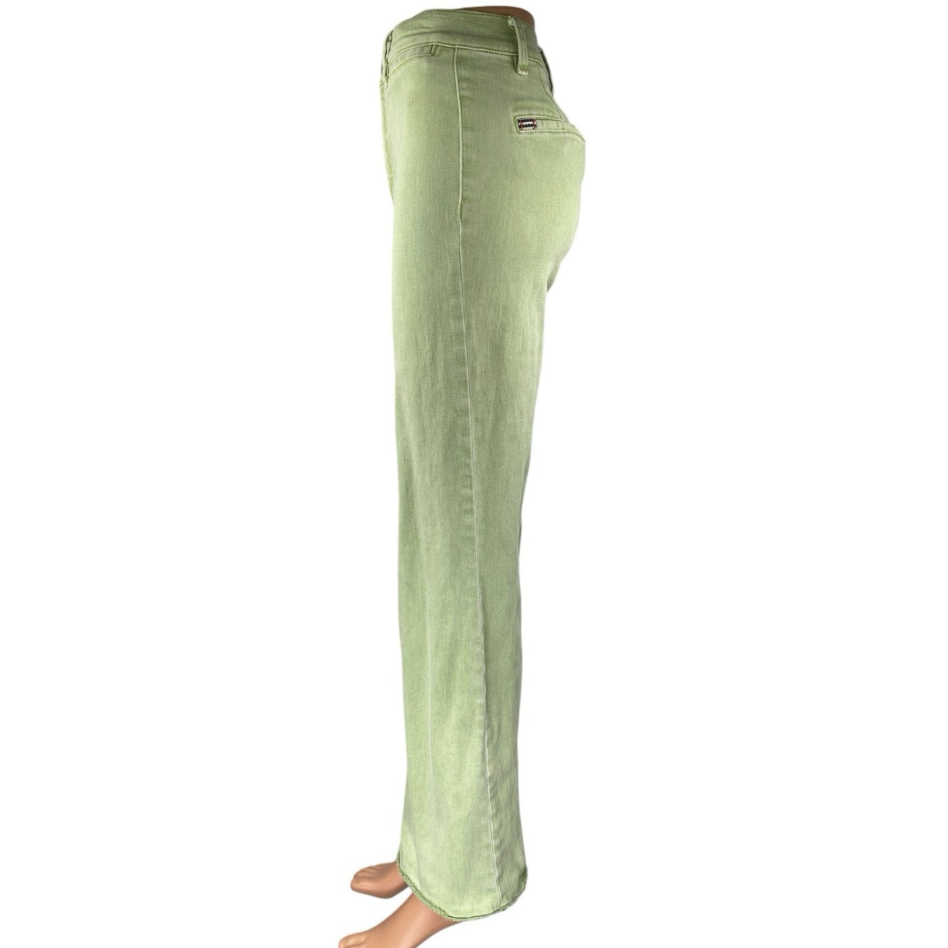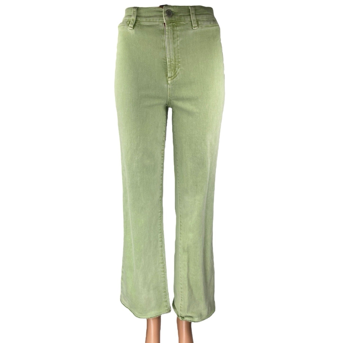Alice + Olivia Green High Waist Frayed Raw hem Bootcut Flared Denim Jeans Pants Size 24