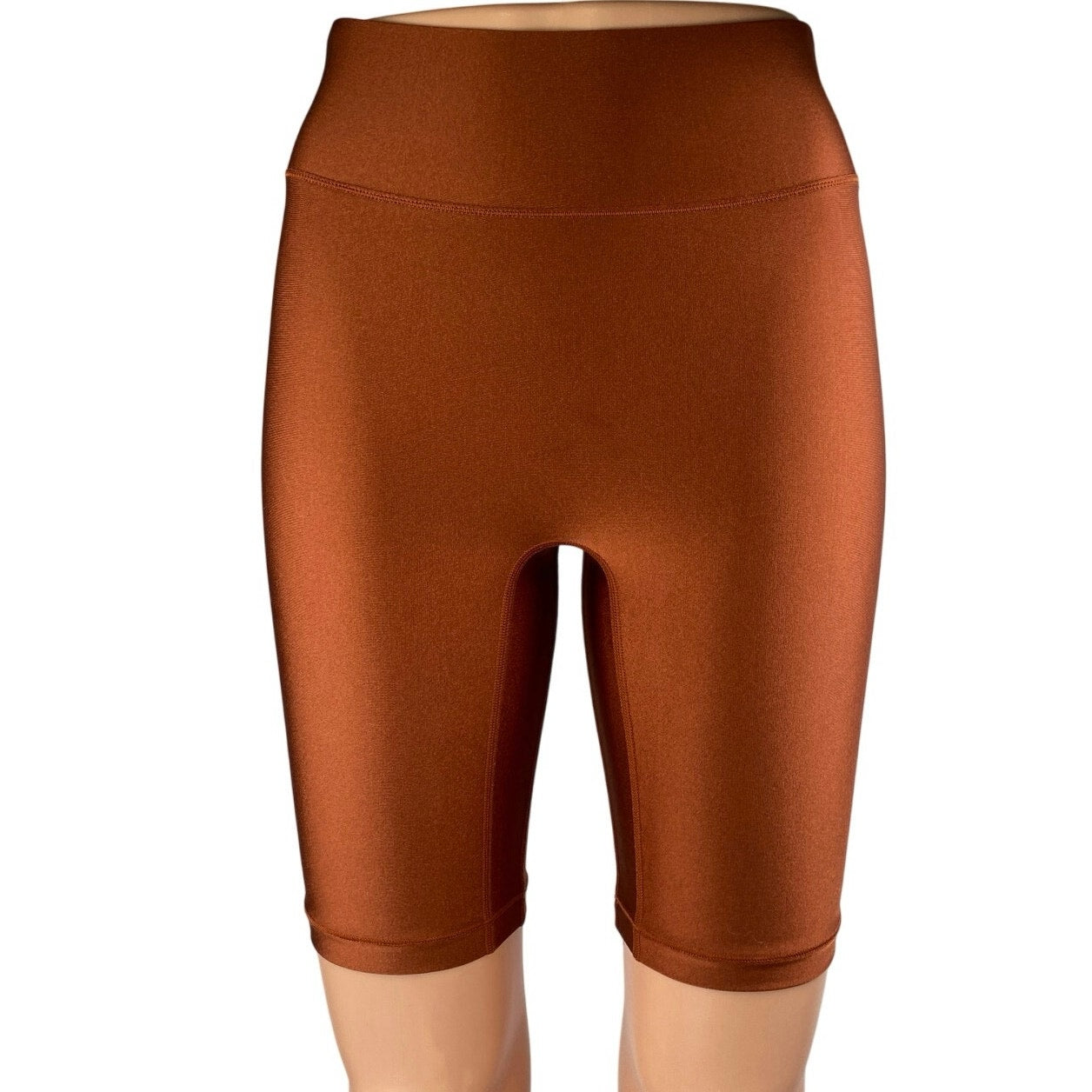 All Access Brown Rust Metallic Shiny High Rise Yoga Athletic Biker Shorts Sz XS
