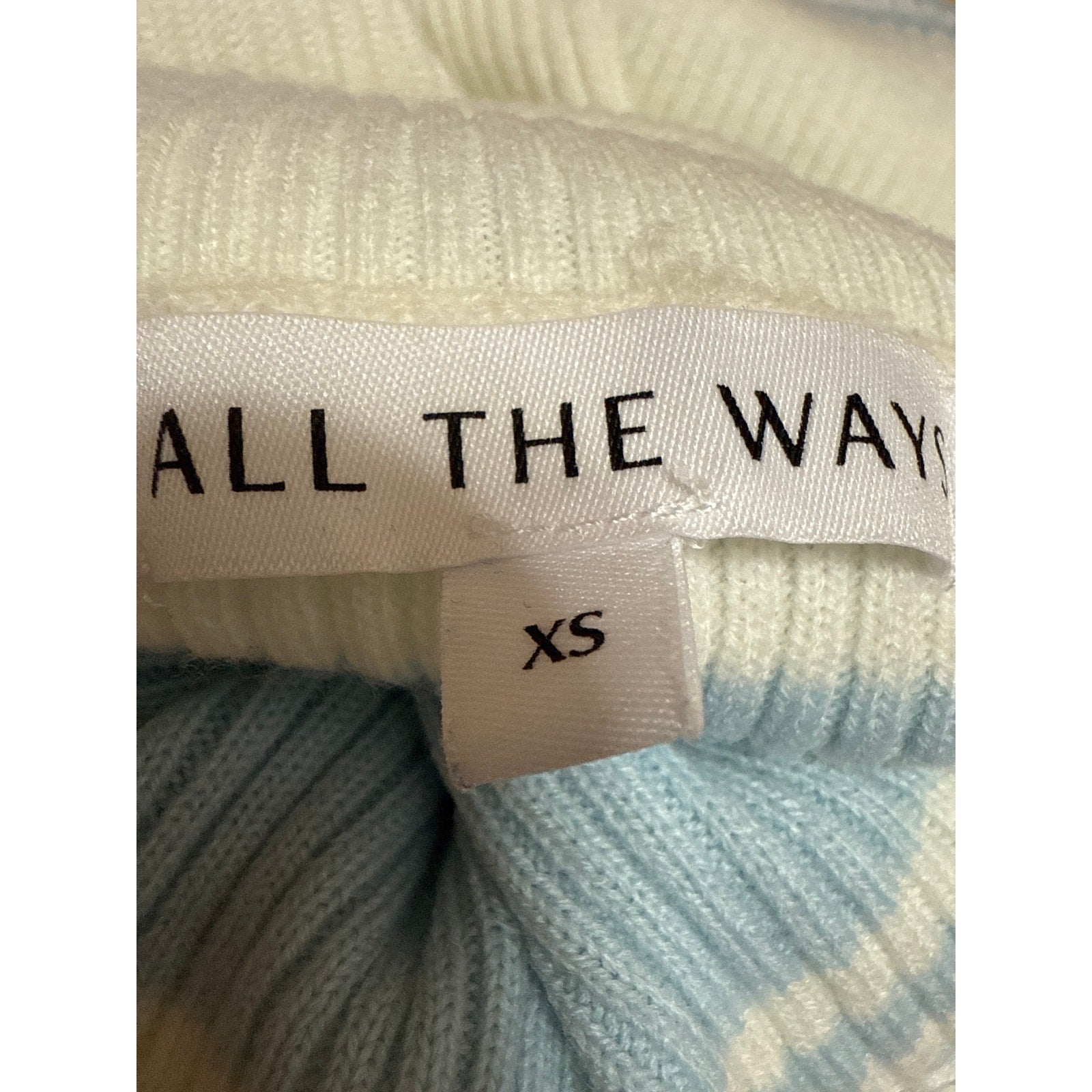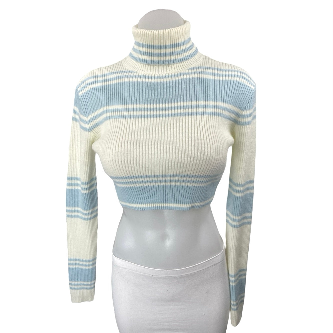 All The Ways Blue Striped Rib Knit Long Sleeve Turtleneck Crop Sweater Top Size XS