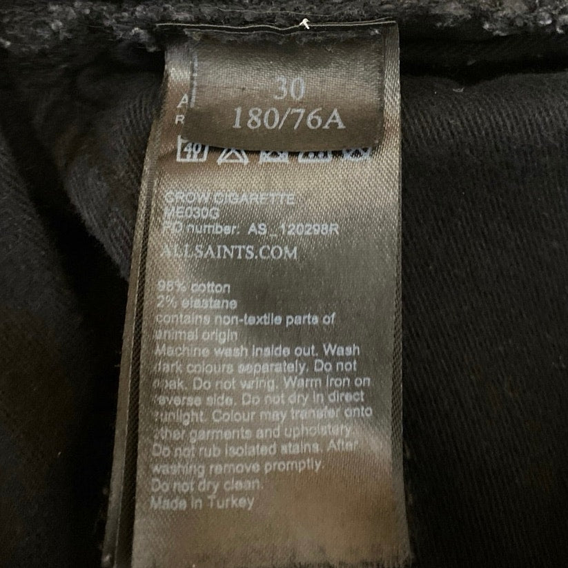 Allsaints Black High Waist Skinny Step Fray Crop Cigarette Denim Jeans Pants 30