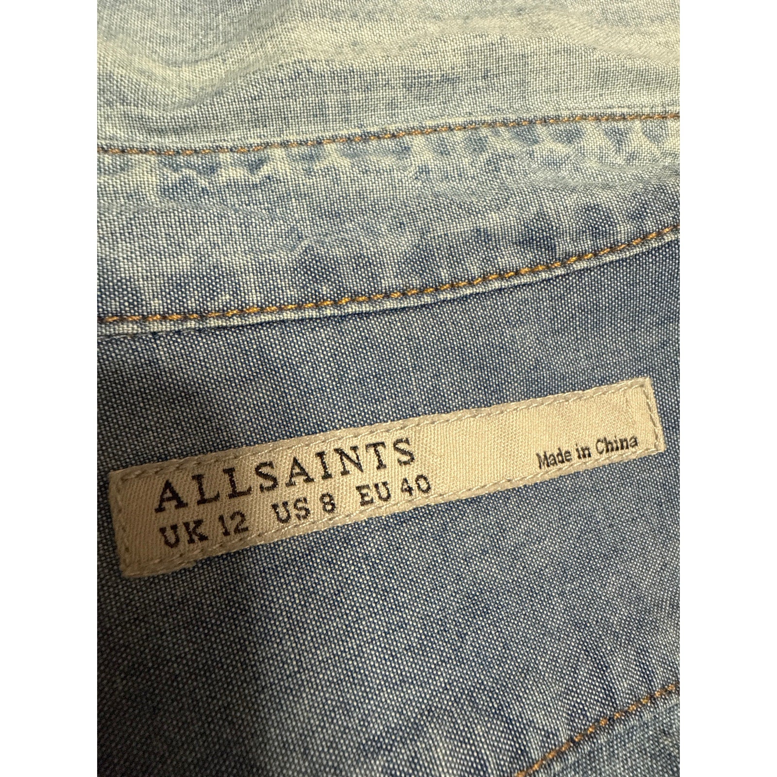 Allsaints Men's Blue Chambray Long Sleeve Button Down Denim Jean Shirt Top Size 8
