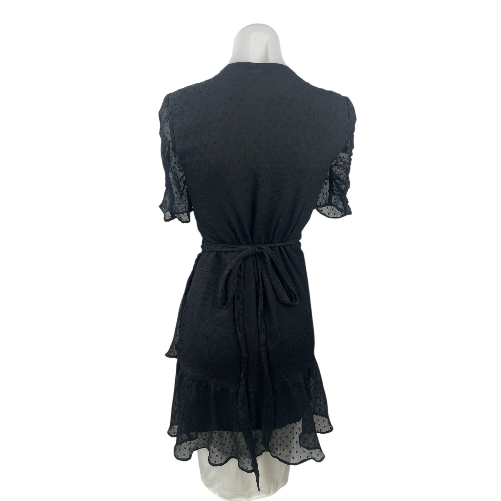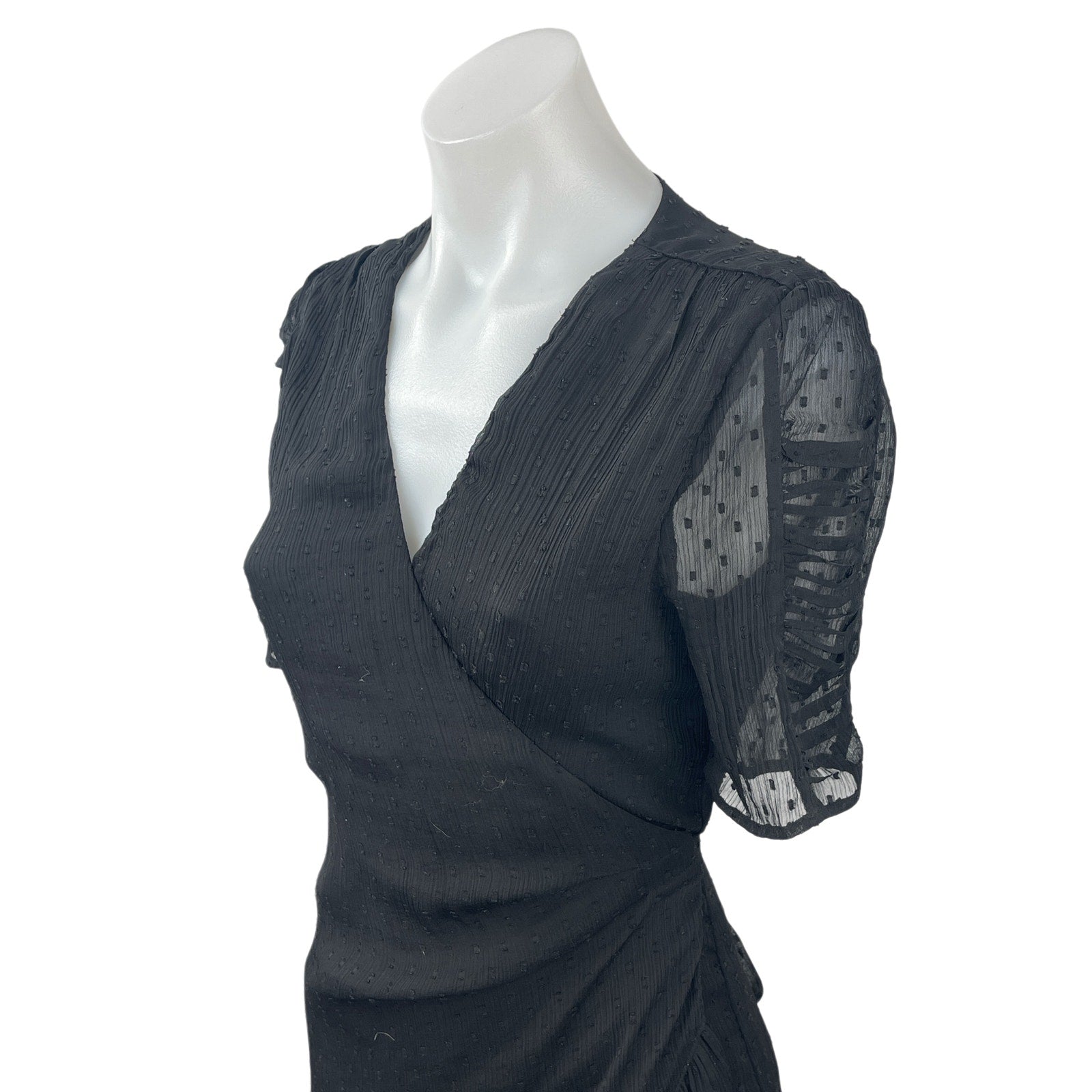AllSaints Sienna Clip Dot Black Mesh Tulle Ruffle Puff Sleeve Mini Wrap Dress 6