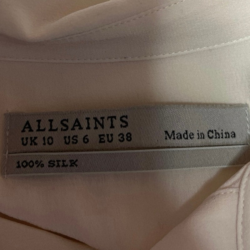 AllSaints White 100% Silk Button Down Collar Long Sleeve Shirt Blouse Top Size 6