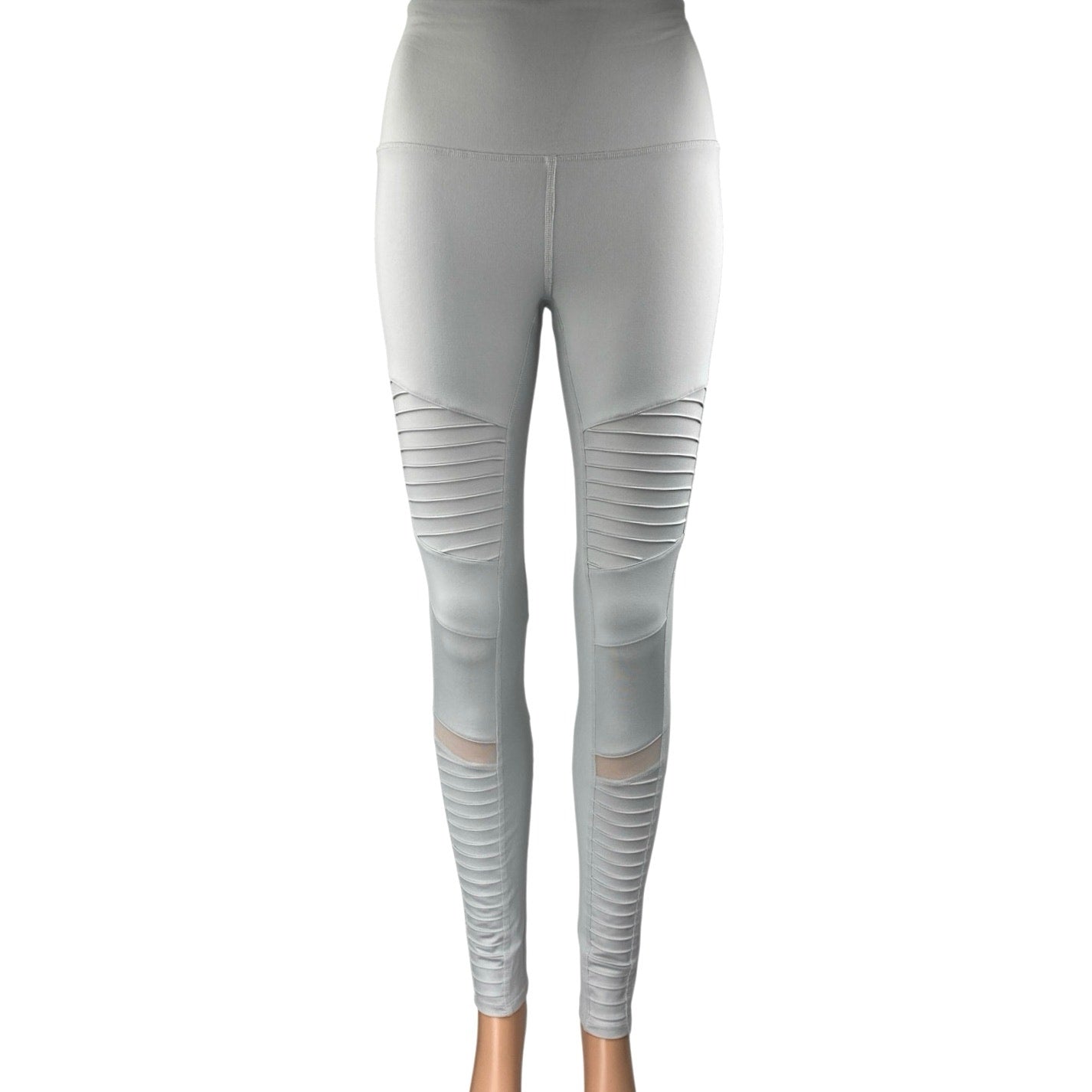 Alo Yoga Moto Women's White High Rise Mesh Workout Athletic Leggings Pants Sz M